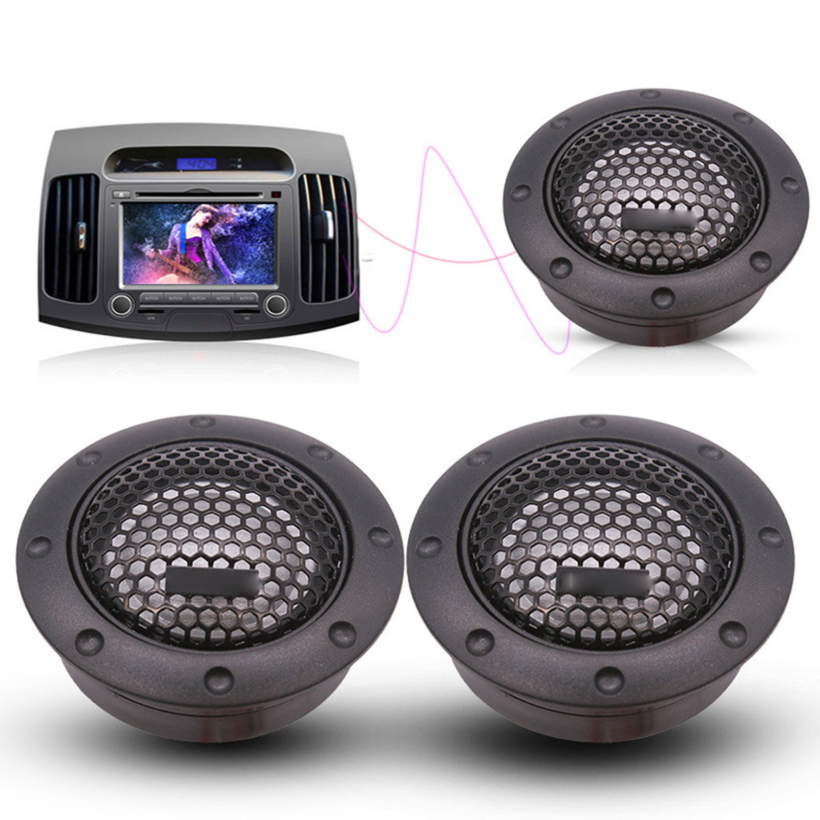 1、Wide Application: Car sound speaker has a wide range of applications and is suitable for lots of car sound systems. 2、High Class Sound Quality: Car speaker through modern technology, can output high fidelity sound, so that drivers can enjoy clear music sound. 3、Durable and Stable: Car audio loudspeaker is made of aluminum alloy, which is high hardness, durable relatively perfect sound quality. And you can use it for a long time. 4、Ideal Replacement: Car loudspeaker can be used to replace the old and damaged one of the original vehicle to improve the driving experience. 5、Easy to Install: The car horn is designed to be easy to install, saving time and money on installation costs.