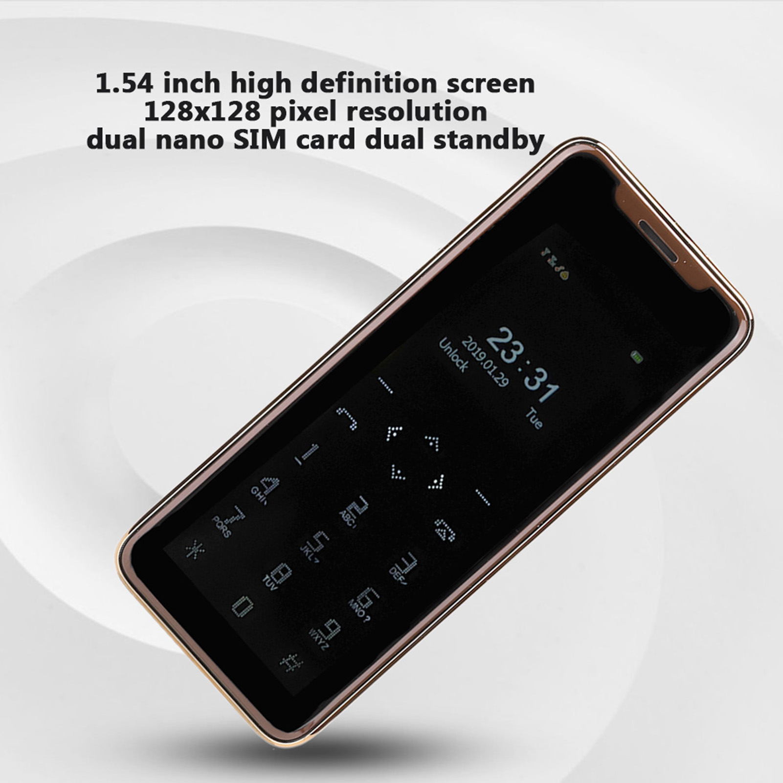 1. 1.54 inch high definition screen, 128x128 pixel resolution, support dual nano SIM card dual standby, easy to use.