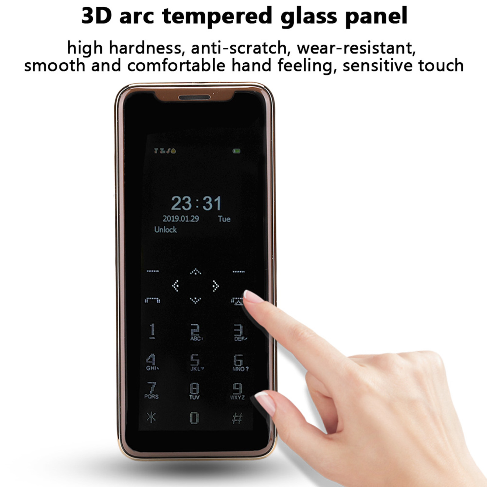 3. 3D arc tempered glass panel, high hardness, anti-scratch, wear-resistant, smooth and comfortable hand feeling, sensitive touch.