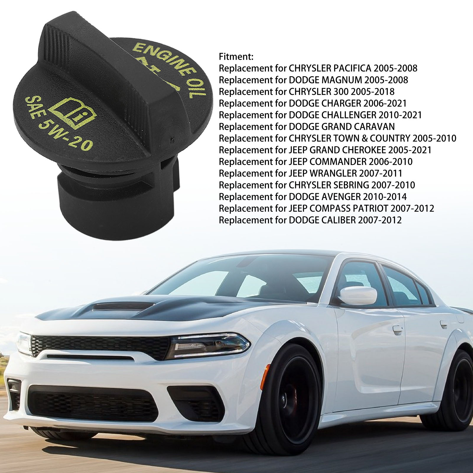 1、Applicable Models: Oil filler cap is replacement for DODGE RAM 3500, replacement for JEEP GRAND CHEROKEE, and replacement for CHRYSLER PACIFICA 2、OE Number: The part numbers of reference are 53013775AB and 53013775AA, please confirm whether it is consistent with the OE you need. 3、Secure Seal: The cap provides a secure seal for your engine oil system, preventing leaks and ensuring proper lubrication of your engine. 4、Enhanced Engine Bay Appearance: The engine oil Filler cap adds a sleek and stylish touch to your engine bay, complementing your vehicle's overall appearance. 5、Perfect Fit: The engine oil filler cap is designed to be a direct replacement for your vehicle's original oil cap, ensuring a perfect fit and easy installation.