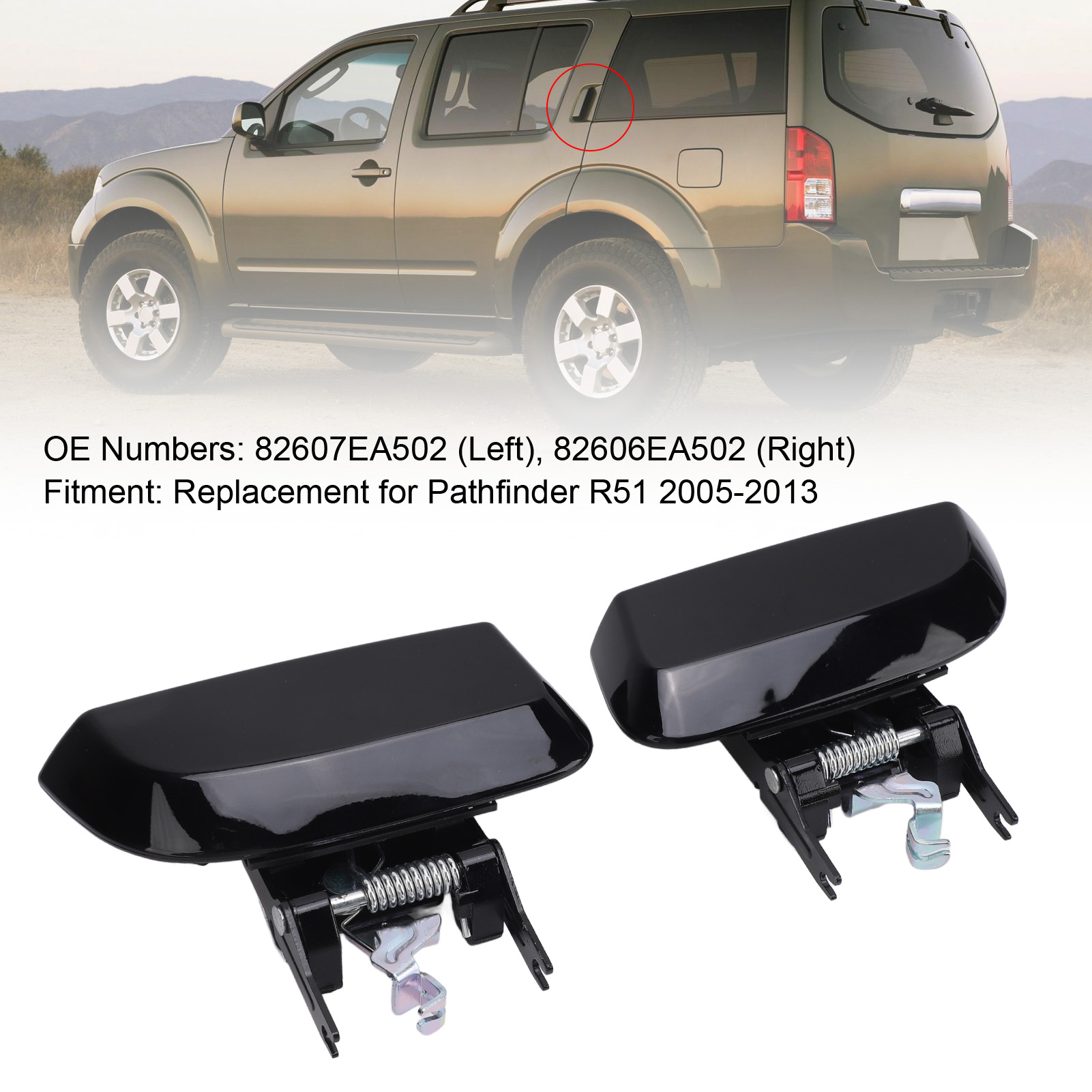 1、VEHICLE FITMENT: This pair of rear door handles is specially designed for Pathfinder R51 2005‑2012 models, ensuring a perfect fit without any compatibility issues. 2、OE NUMBERS: The replacement part number for the right side of the door handle is 82606EA502, and the left side is 82607EA502. Please check the number before ordering. 3、PREMIUM MATERIAL: Crafted from high strength ABS materials, these door handles are strong and long lasting, sturdy construction resists damage and cracking. 4、ERGONOMIC GRIP: The door handles are crafted to offer excellent grip for comfortable and easy us, allowing you to have a flexible and efficient door opening experience. 5、SIMPLE UPGRADE: Simple and straightforward installation process, no special tools required. Enhance the look of your car with these stylish and functional rear door handles.