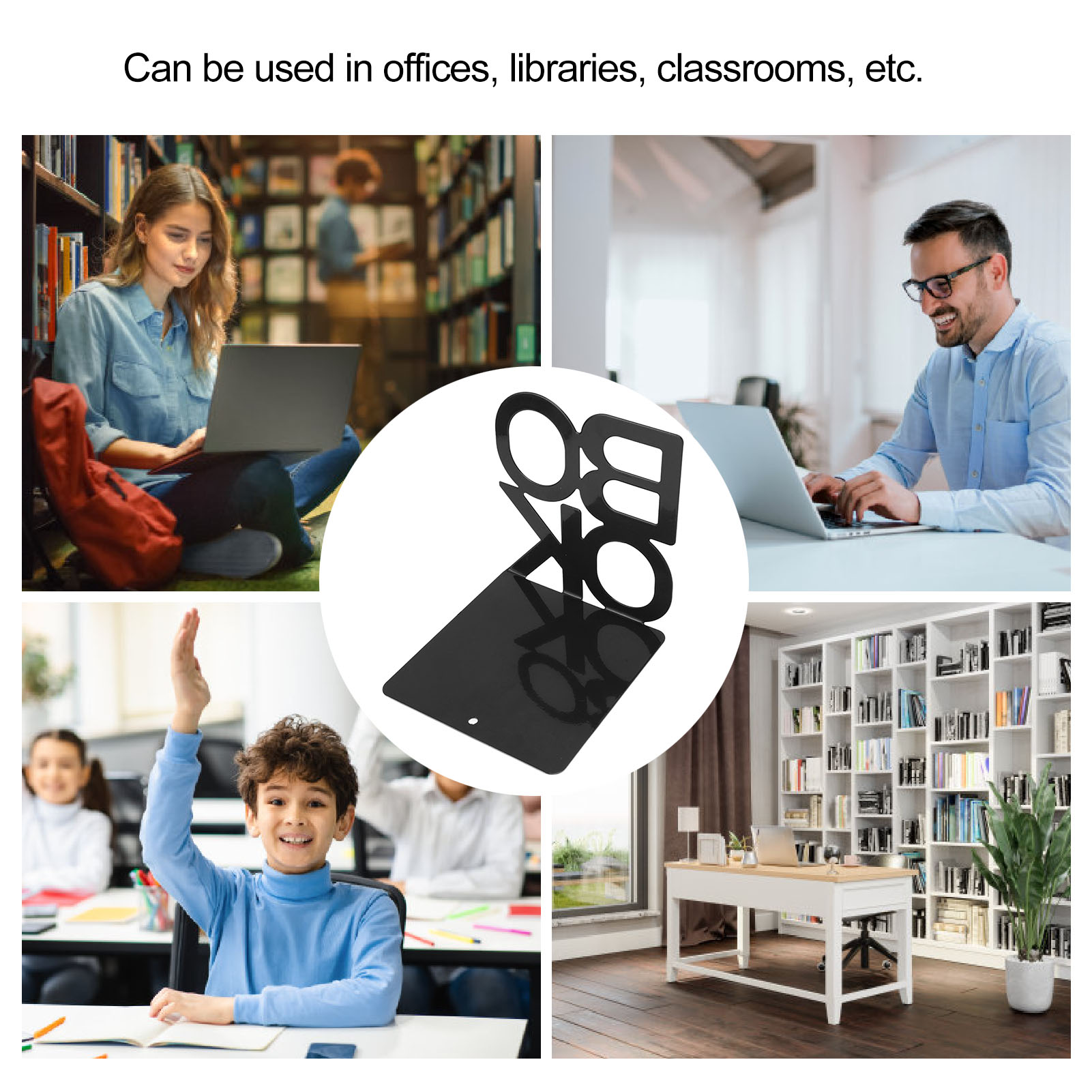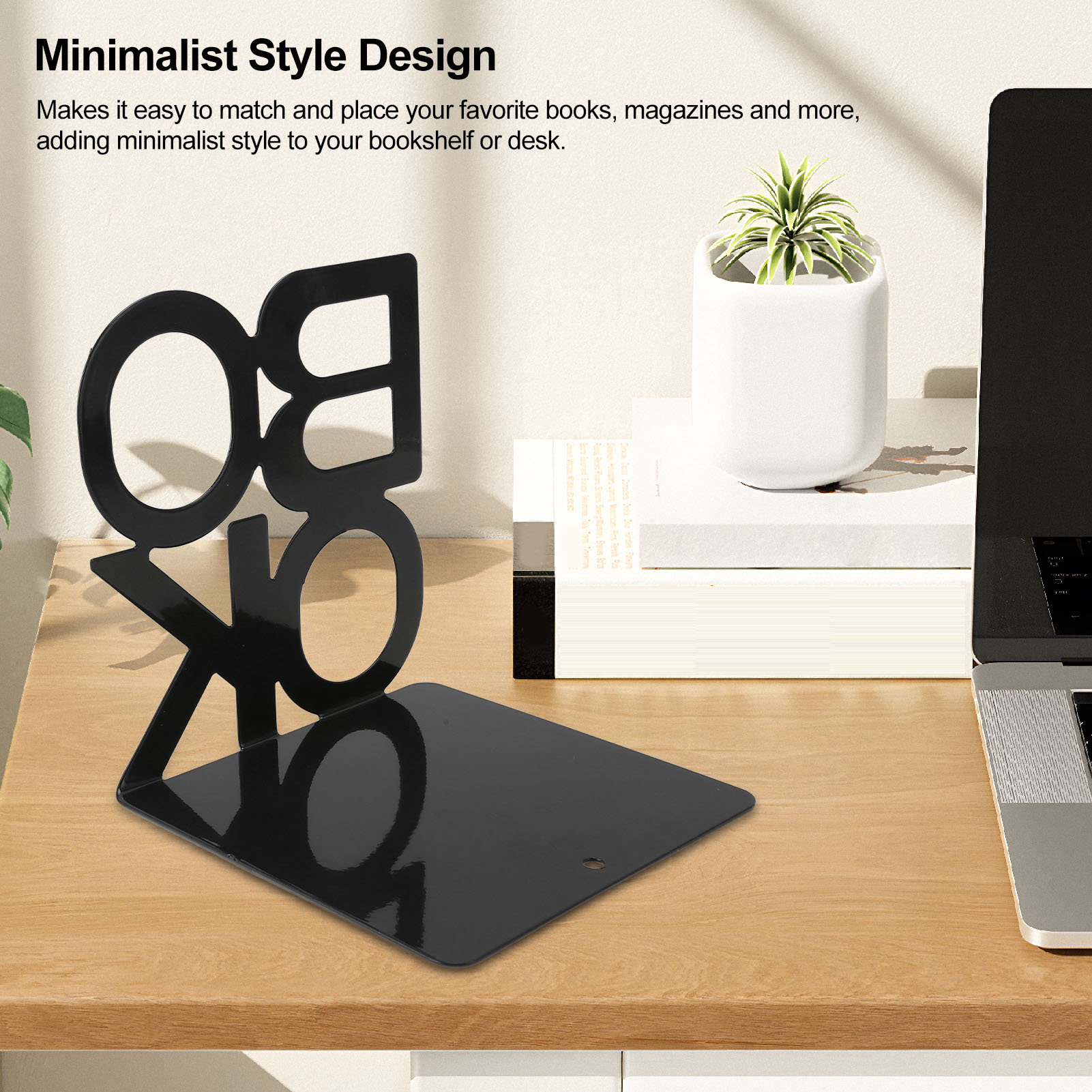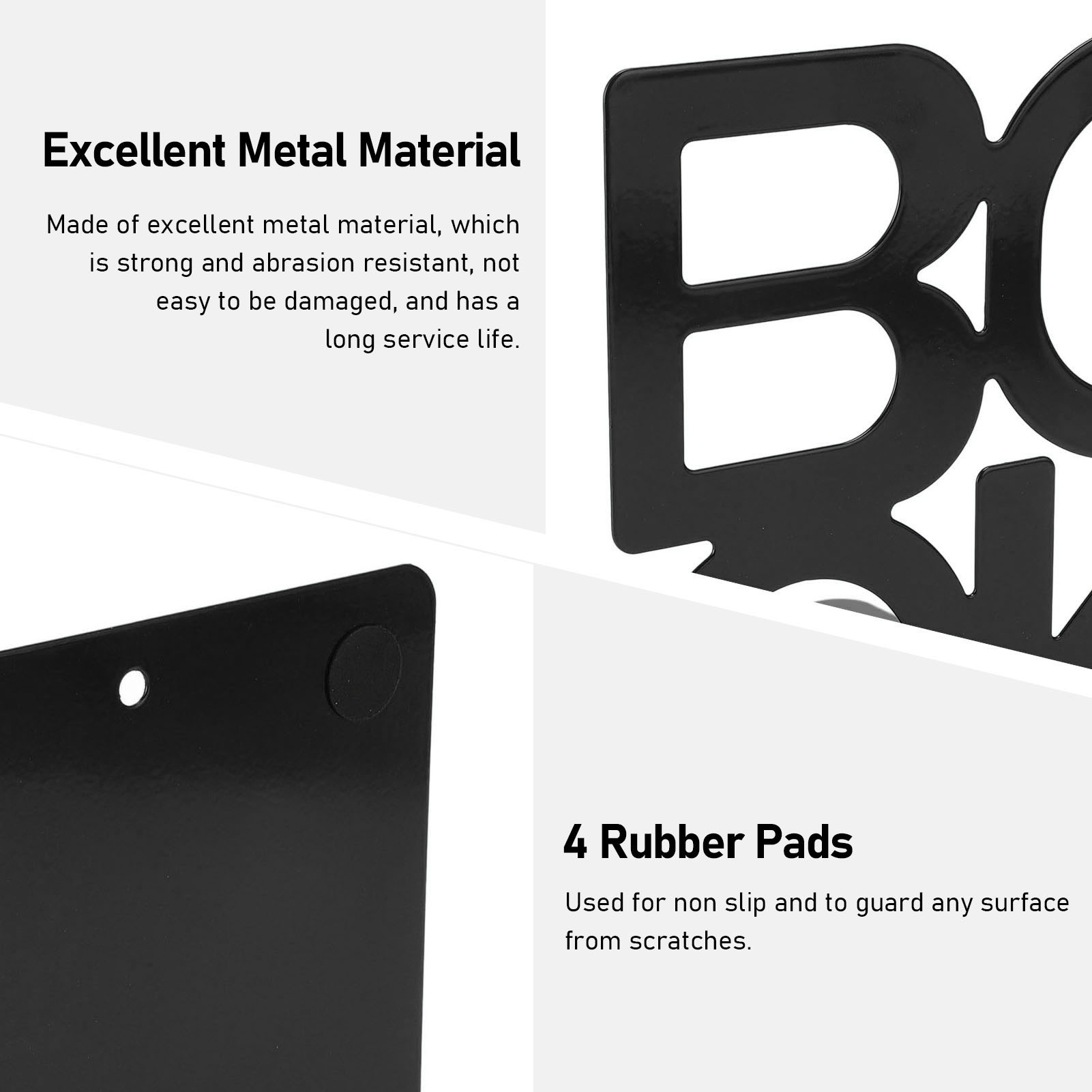 1、Minimalist Style Design: This book holder is designed in minimalist style, sew into any office, allowing you to easily match and place your favorite books, magazines, etc., adding minimalist style to your bookshelf or desk. 2、Excellent Metal Material: This decorative book stopper is made of excellent metal material, which is strong and abrasion resistant, not easy to be damaged, and has a long service life. 3、4 Rubber Pads: This book holder stopper features four rubber pads on the bottom for non slip and to guard any surface from scratches, which are very stable and not easy to tip over. 4、Multifunctional: This book stand is multifunctional, it can be used to effectively prevent books and other books from tipping over, and it can be used to organize your desk, bookcase and make your space look more neat and tidy. 5、Wide Application: This modern bookend has a wide range of applications and can be used for desks and simple book stands in offices, libraries, classrooms and other places, which is very practical.