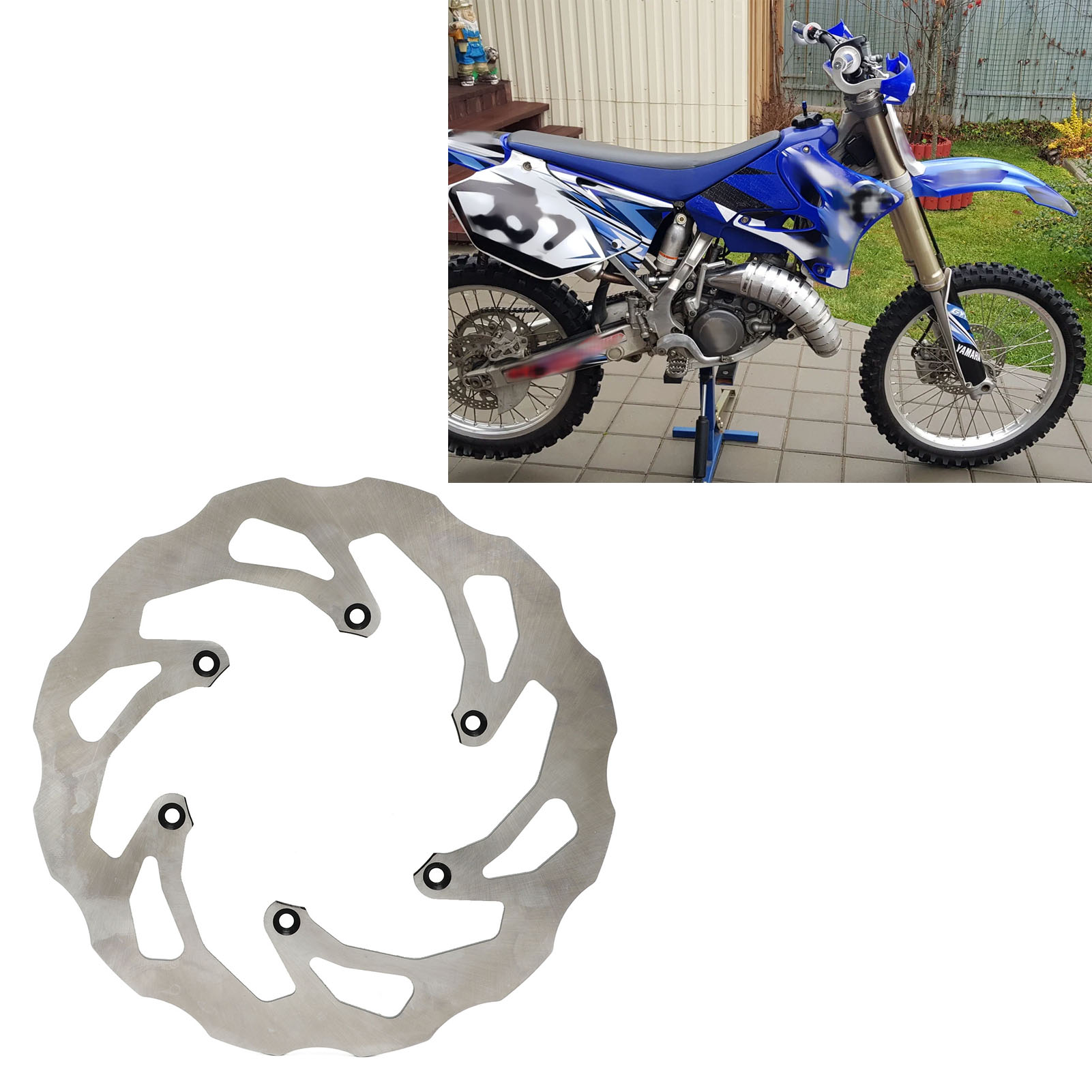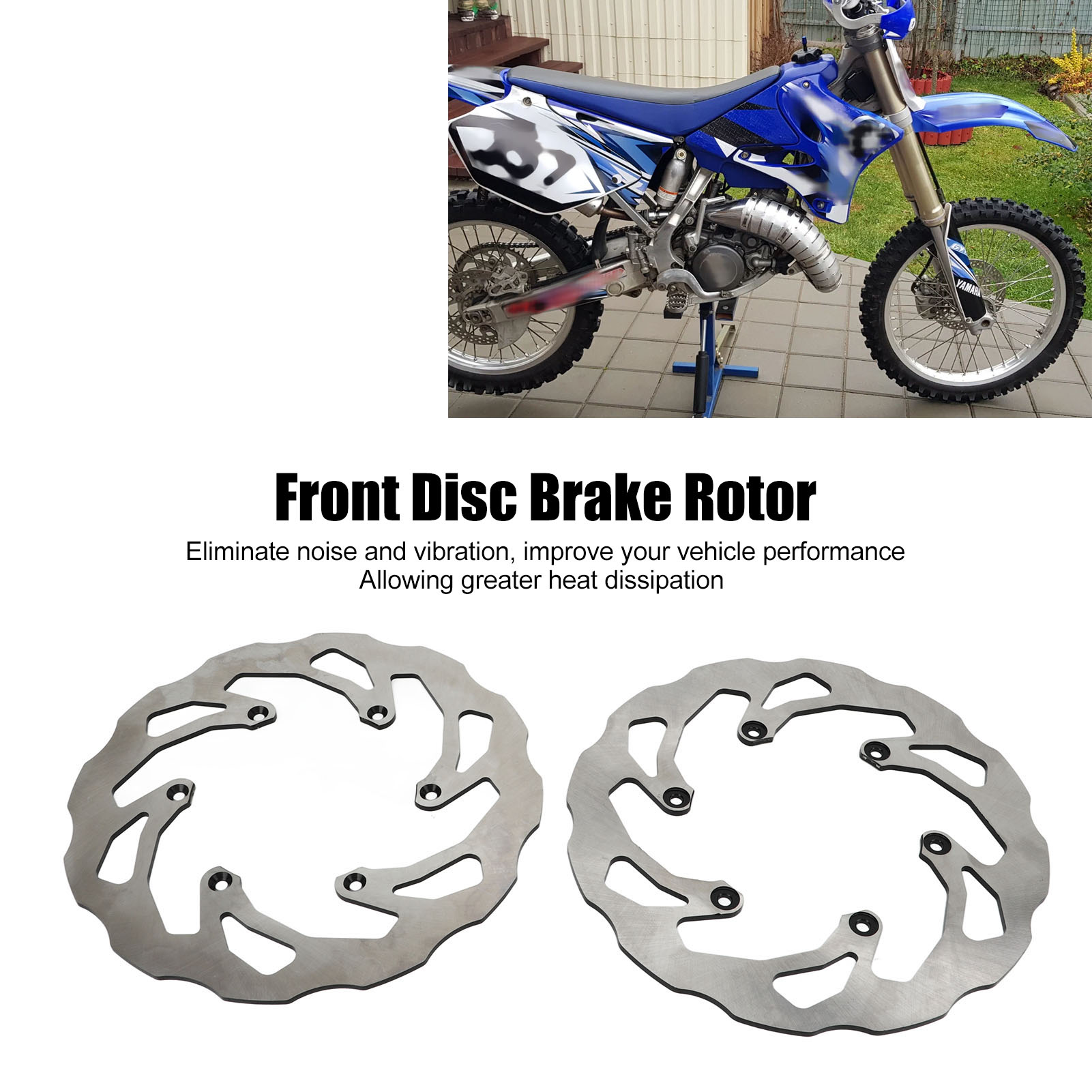 1、Fitment: Front disc brake is fit for YZ125 02‑16, fit for YZ250 02‑15, fit for YZ250F 02‑15, fit for YZ450F 03‑15, fit for YZ250X 16, fit for YZ250FX 15‑16, fit for WR250F 02‑16. 2、Function: Brake disc rotor can eliminate noise and vibration, also improve your vehicle performance, giving you a good driving experience. 3、Features: Allowing greater heat dissipation to prevent disc and pad over heating. Sturdy wavy designs, optimise the braking performance of your motorcycle. 4、Performance: Supplying a more efficient area of pad contact compared to standard round discs, convenient and easy to use. 5、Durable Construction: High strength ABS construction for maximum durability, high work efficiency and stable performance.