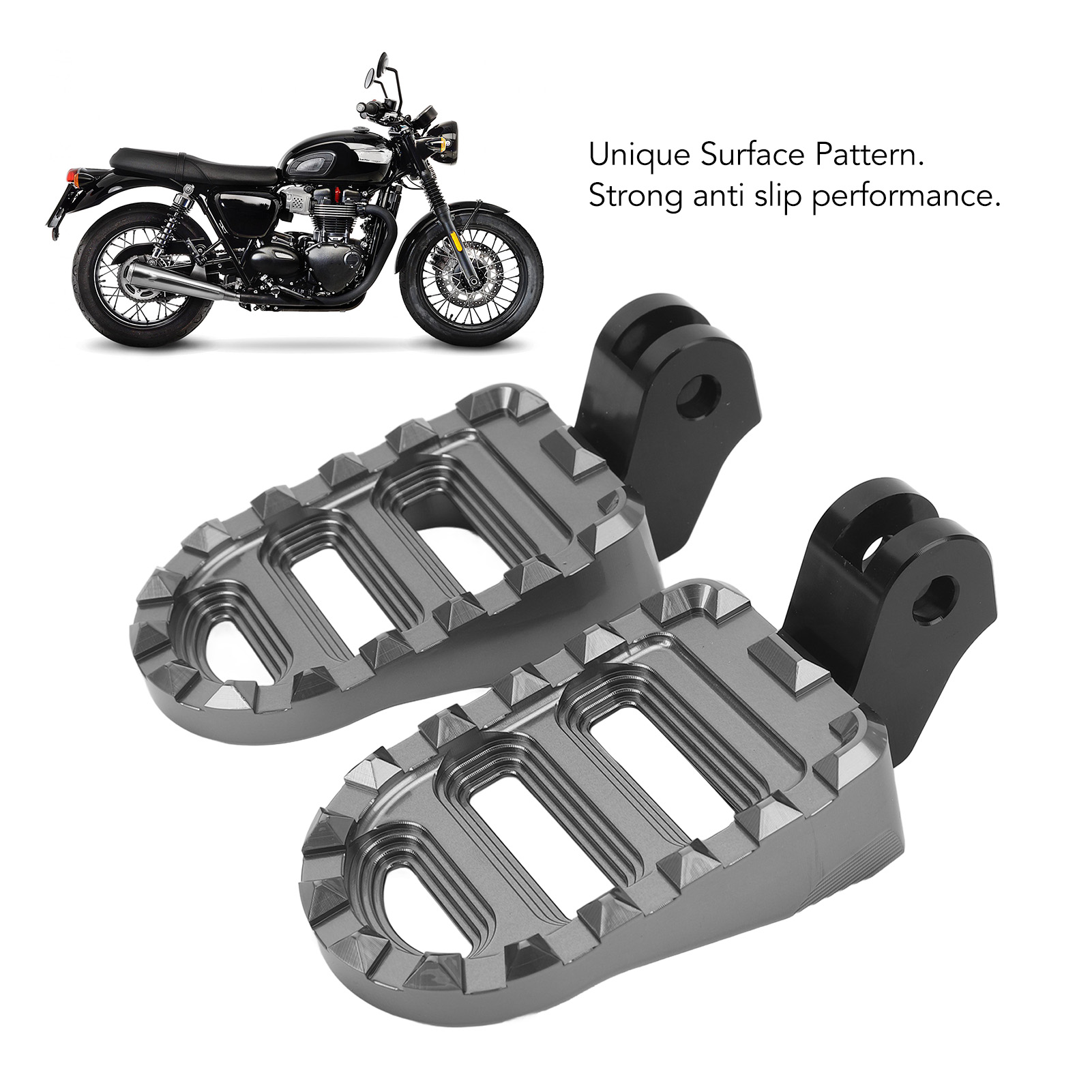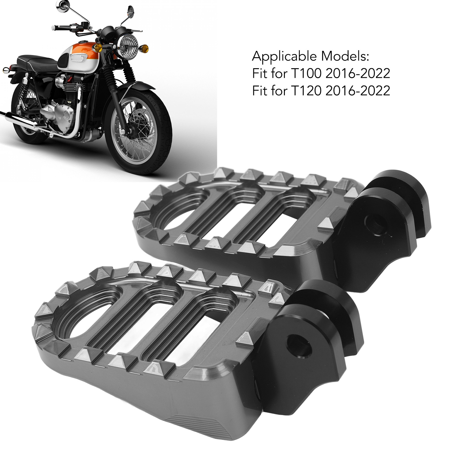 1、Applicable Model: Front foot peg is fit for T100 T120 2016 to 2022, please confirm whether your model is applicable before buying. 2、Enhanced Rider Comfort: Our motorcycle front foot pegs provide a comfortable and ergonomic position for riders, reducing fatigue during long rides. 3、Anti Slip Pattern: Our front pedals come with a unique non slip pattern that allows riders to better control and stabilize their motorcycles. 4、Sturdy and Fadeproof: Made of rugged, high strength aluminum alloy, foot peg has corrosion resistance and durability. After anodizing and spraying bright paint treatment, not easy to fade. 5、Installation Instructions: Install without modification, just remove the original pedal, and then install this pedal (does not contain pins/springs/steel balls and other accessories, please use the original parts).