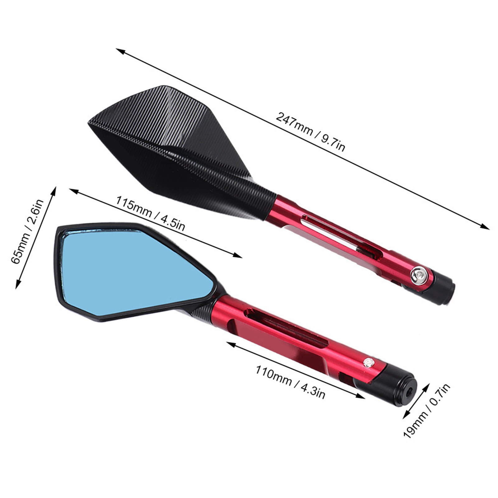 1、Suitable for scooter, motorcycle and electrombile use, easy to replace and use. 2、Provide clear and wide rear side view while driving, ensuring your cycling safety. 3、Comes with installation accessories, great replacement and modification accessories. 4、The mirror rod adopts CNC high density aluminum alloy material, high hardness and long service life. 5、The stylish appearance will decorate your motorcycle and add a beautiful scenery to your motorcycle.