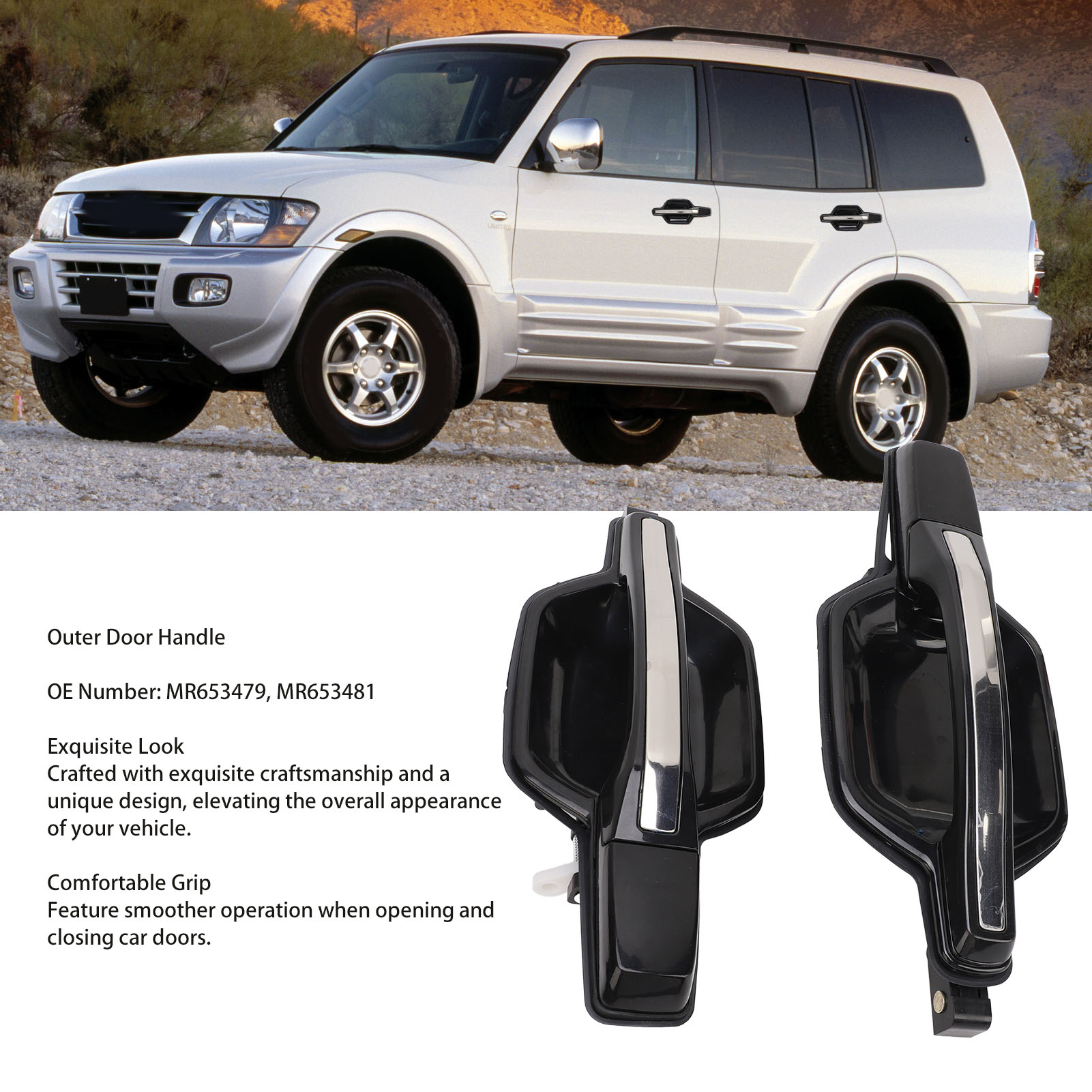 1、Applicable Model: The outside door handle is for Montero 2001 to 2006. Please confirm whether it is consistent with the product you want before buying to avoid unnecessary return. 2、OE Number: The part numbers for reference are MR653479, MR653481. Please confirm whether it is consistent with the OE you need to avoid wrong buying and other problems. 3、Exquisite Look: The outer door handle is professionally manufactured with exquisite craftsmanship and unique design, enhancing the overall vehicle appearance. 4、Comfortable Grip: The exterior door handle features comfortable touch for easy grip, ensuring smoother operation for car door opening and closing. 5、Premium Material: The rear door handle is made of premium ABS material, ensuring long lasting stability and durability, sturdy and high strength, easy to install without any modifications or special tools.