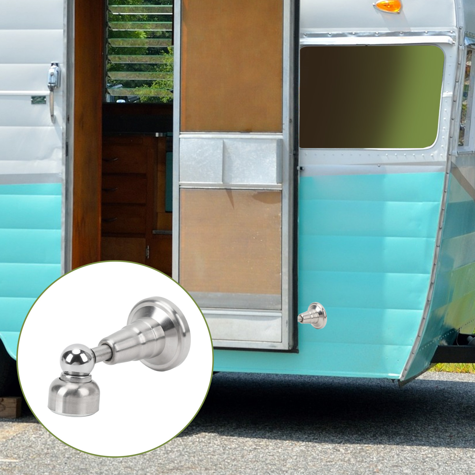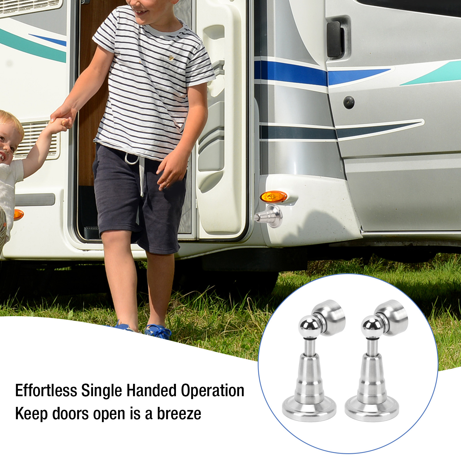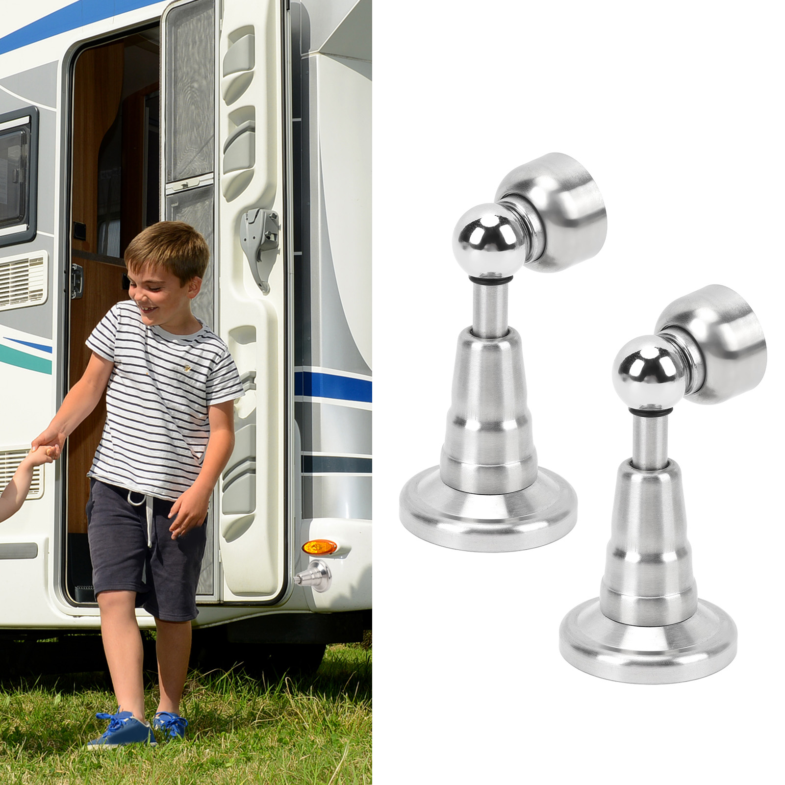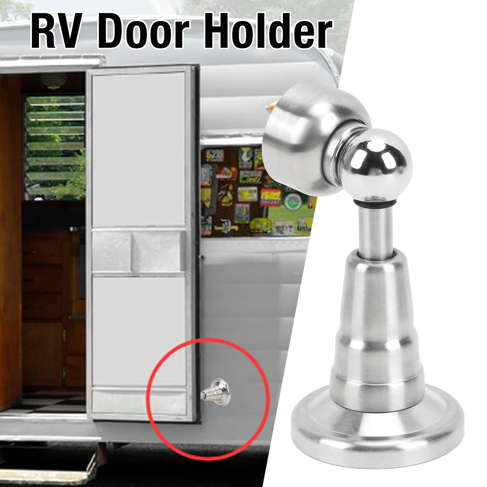 1、Sturdy Hold: The door holder features strong adsorption force to firmly secure your doors. Its compact and lightweight design takes minimal space while withstanding all types of weather for long lasting use. 2、Elegant and Reliable: Enhance your RV experience with our RV door catch. The exterior not only provides a stylish and modern appearance but also offers lasting guard. The interior stainless steel construction ensures a combination of aesthetics and strength. 3、Quiet Operation: Incorporate our hydraulic shock absorbing technology for minimal noise when opening and closing. Its built in hydraulic damping spring ensures a quieter experience compared to other RV door holders, protecting your RV walls and doors from each impact. 4、Versatile Application: As an essential RV accessory, this door holder is suitable for RVs, campers, trailers, and more. It's a great addition to your RV, offering convenience and protecting your vehicle. 5、Easy Installation: Installing our door stopper is effortless. It comes with screws for a secure and stable fit, ensuring your doors stay in place without any hassle, giving you more convenience.