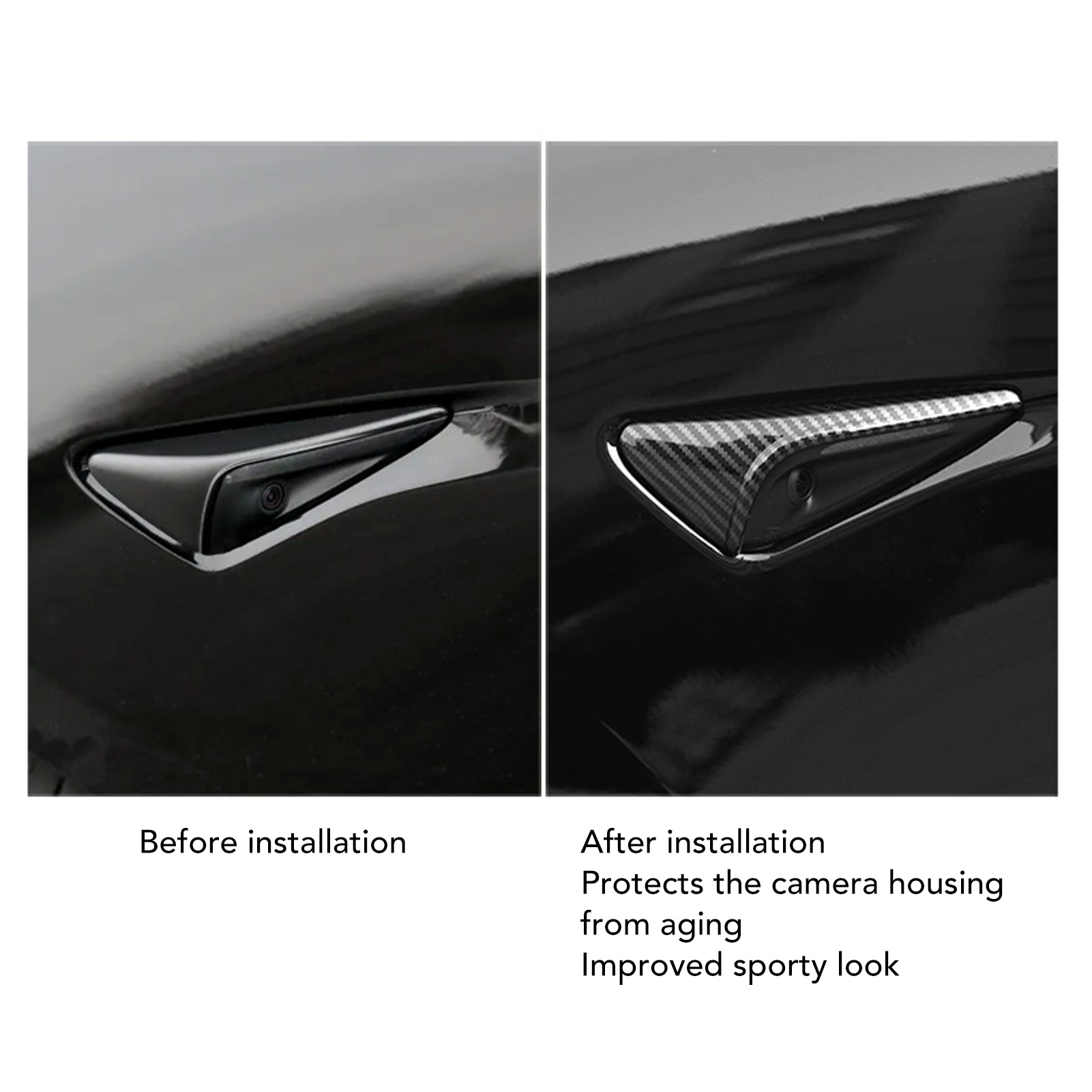 1 Pair Side Camera Protection Cover Impact Proof Scratch Resistant Stylish Look Turn Signal Side Camera Cover for Vehicle Glossy Carbon Fiber Style
