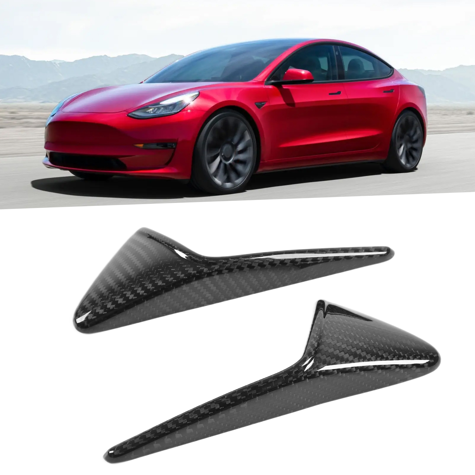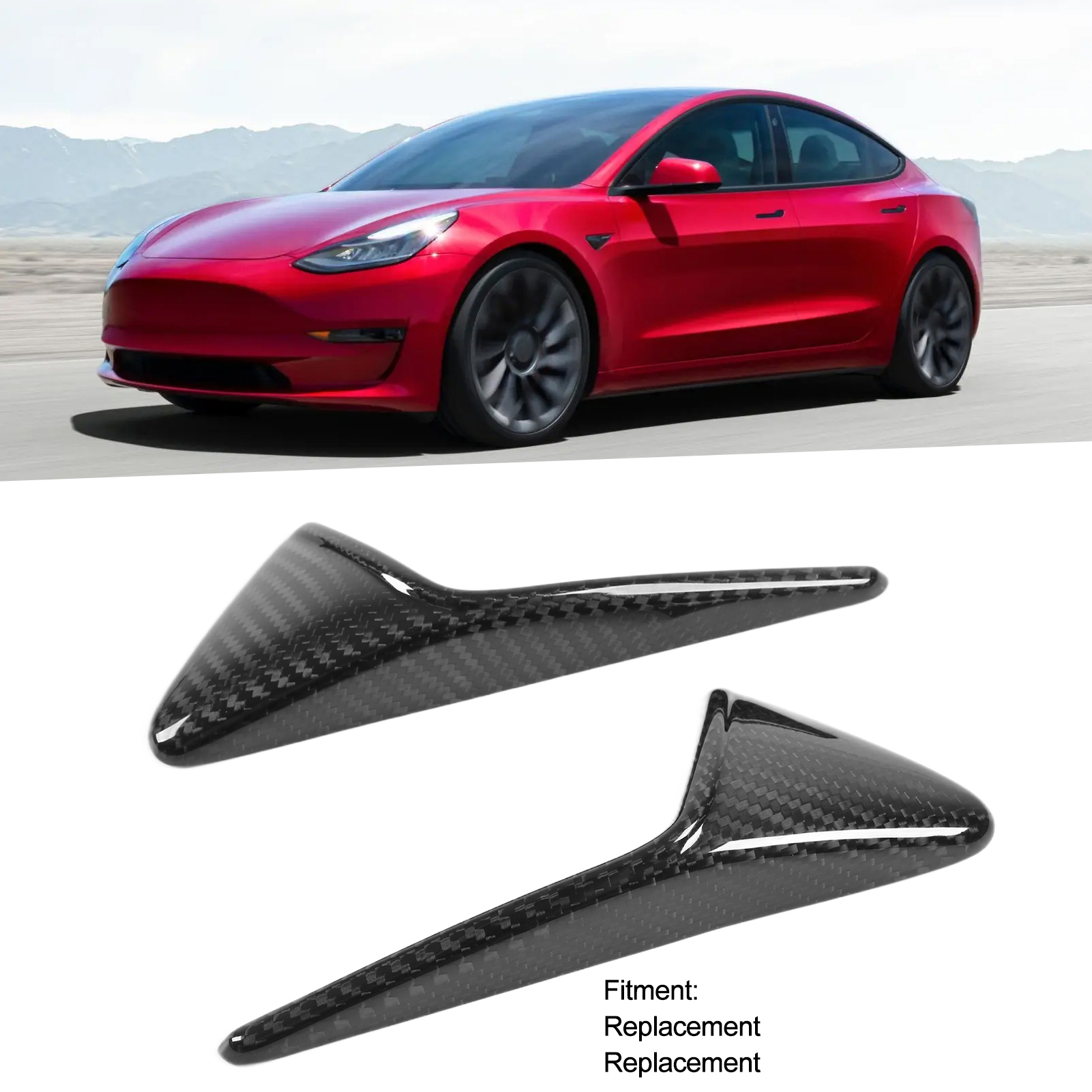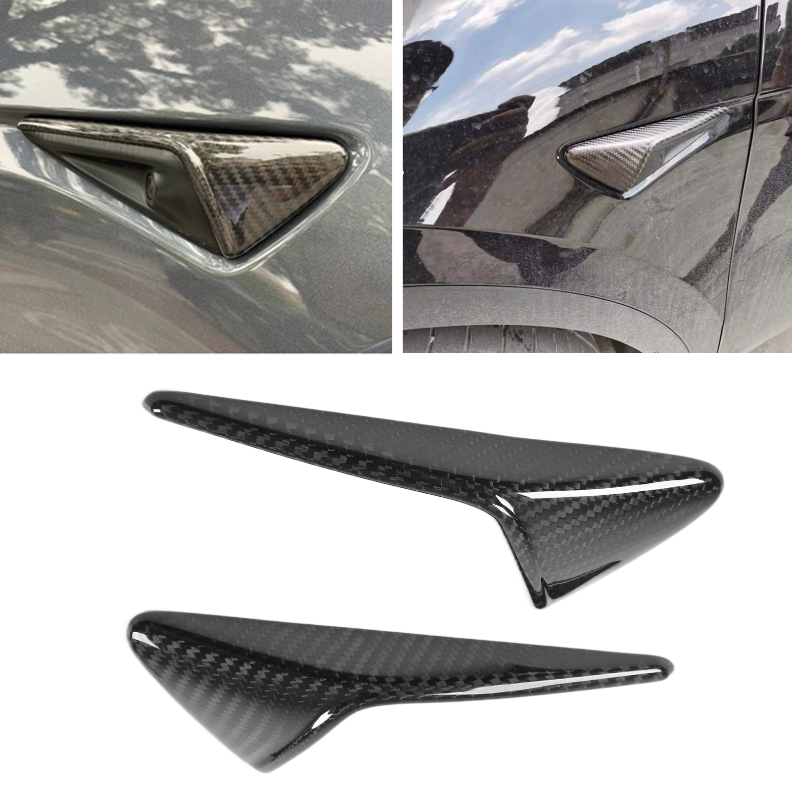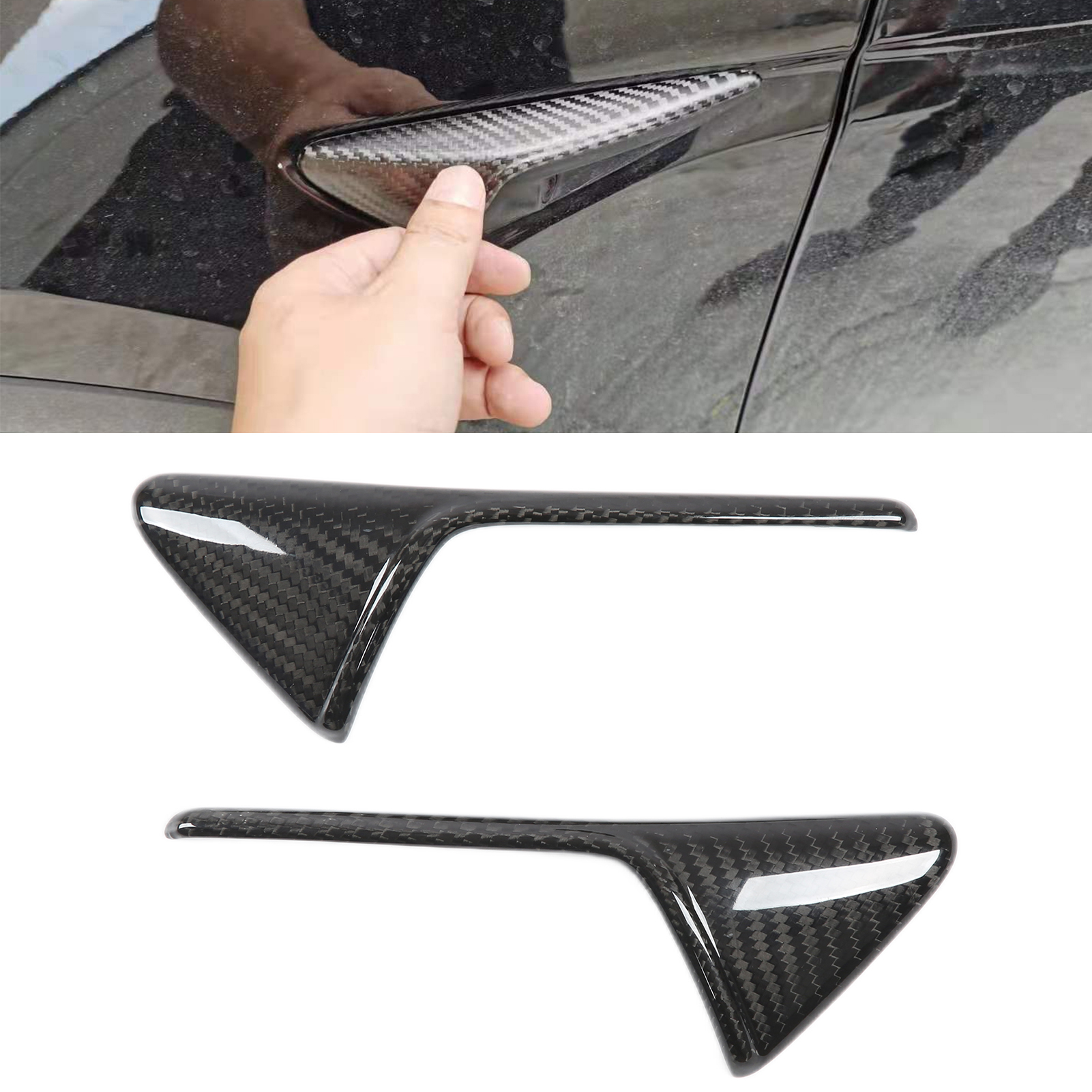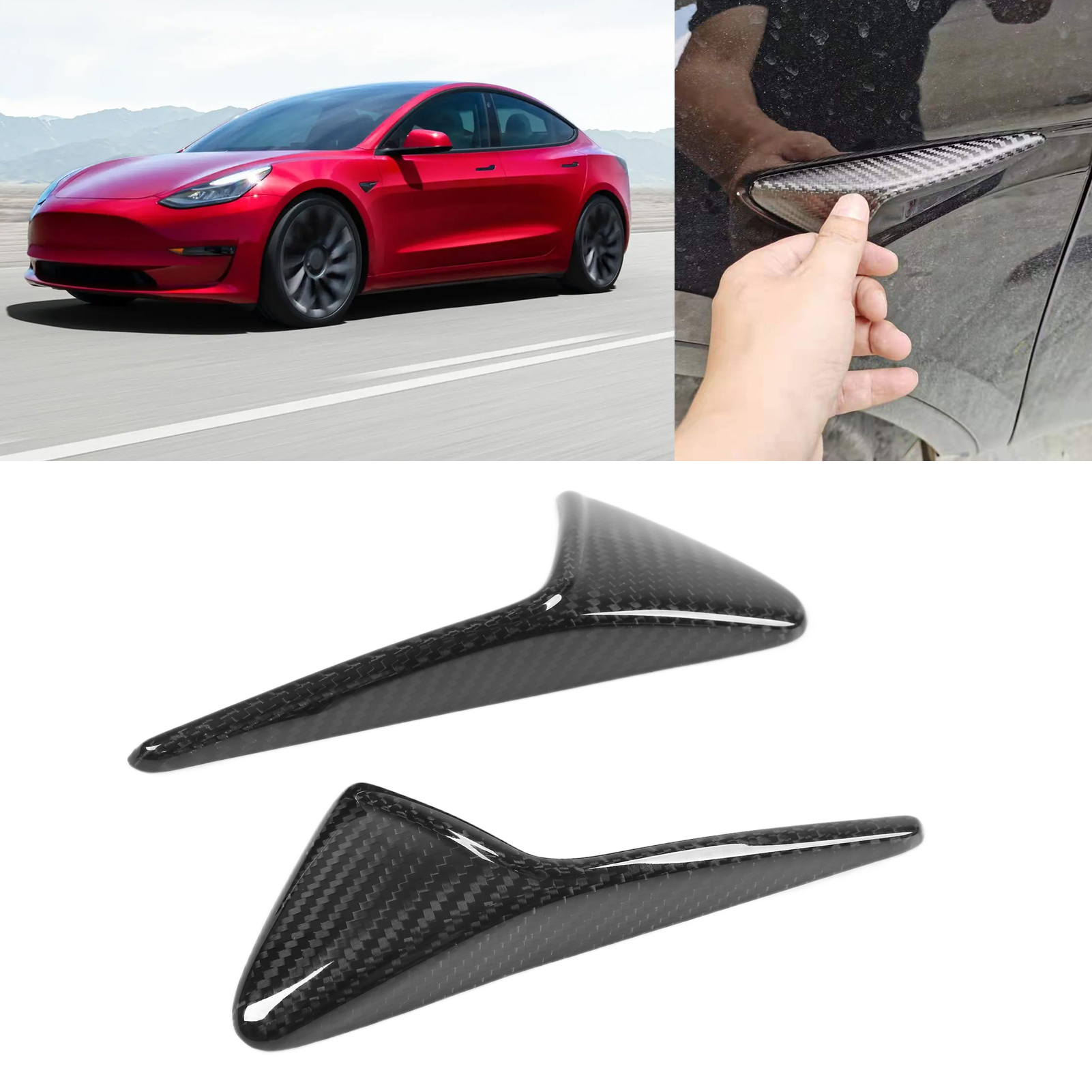 1、Side camera vent trim cover, perfect replacement for Tesla Model 3 Model Y. 2、Made of real 3K carbon fiber material, lightweight, wear resistant and durable. 3、With UV resistant clear coating, which can prevent fading, it is colorfast. 4、Stylish and generous, greatly improve the sporty appearance for your car. 5、Simple stick‑on installation, no complicated drilling is required, convenient to use.