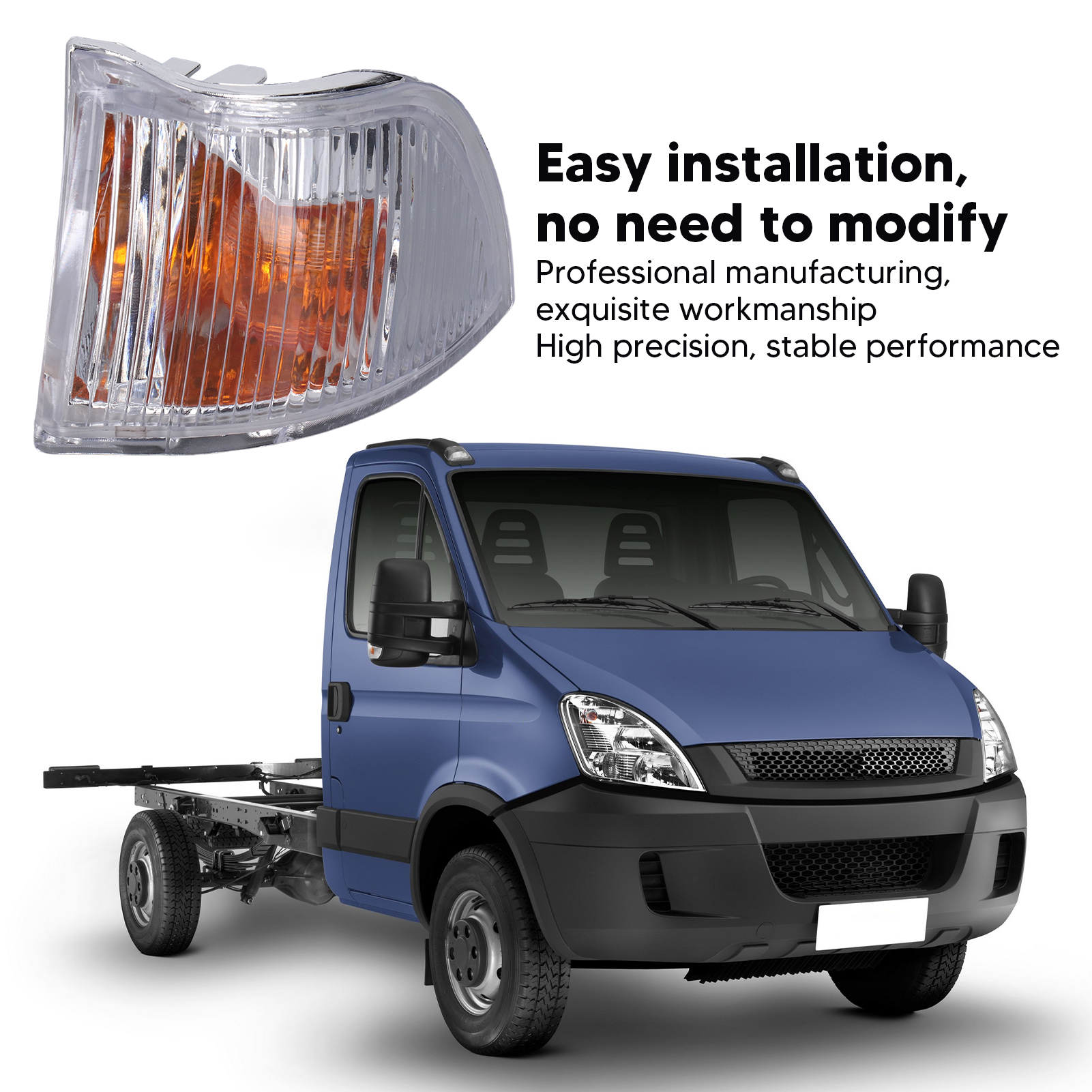 1、Fitment: Wing mirror indicator light cover is replacement for Iveco Daily 2006‑2012, which is made according to the prototype of the car. 2、OE Number: Wing mirror indicator lamp cover replace part number is IVE098. Please check the part numbers whether it suits your vehicle before purchasing. 3、Premium Material: Wing mirror indicator light Lens are made of ABS material, rust proof, high strength, not easy to break, sturdy and durable. 4、Easy Install: This cover is easy to install, requires no modifications. It uses the original standard and is a great replacement that will fit your car perfectly. 5、Excellent Performance: Professional manufacturing, exquisite workmanship, high accuracy, stable performance and high reliability.