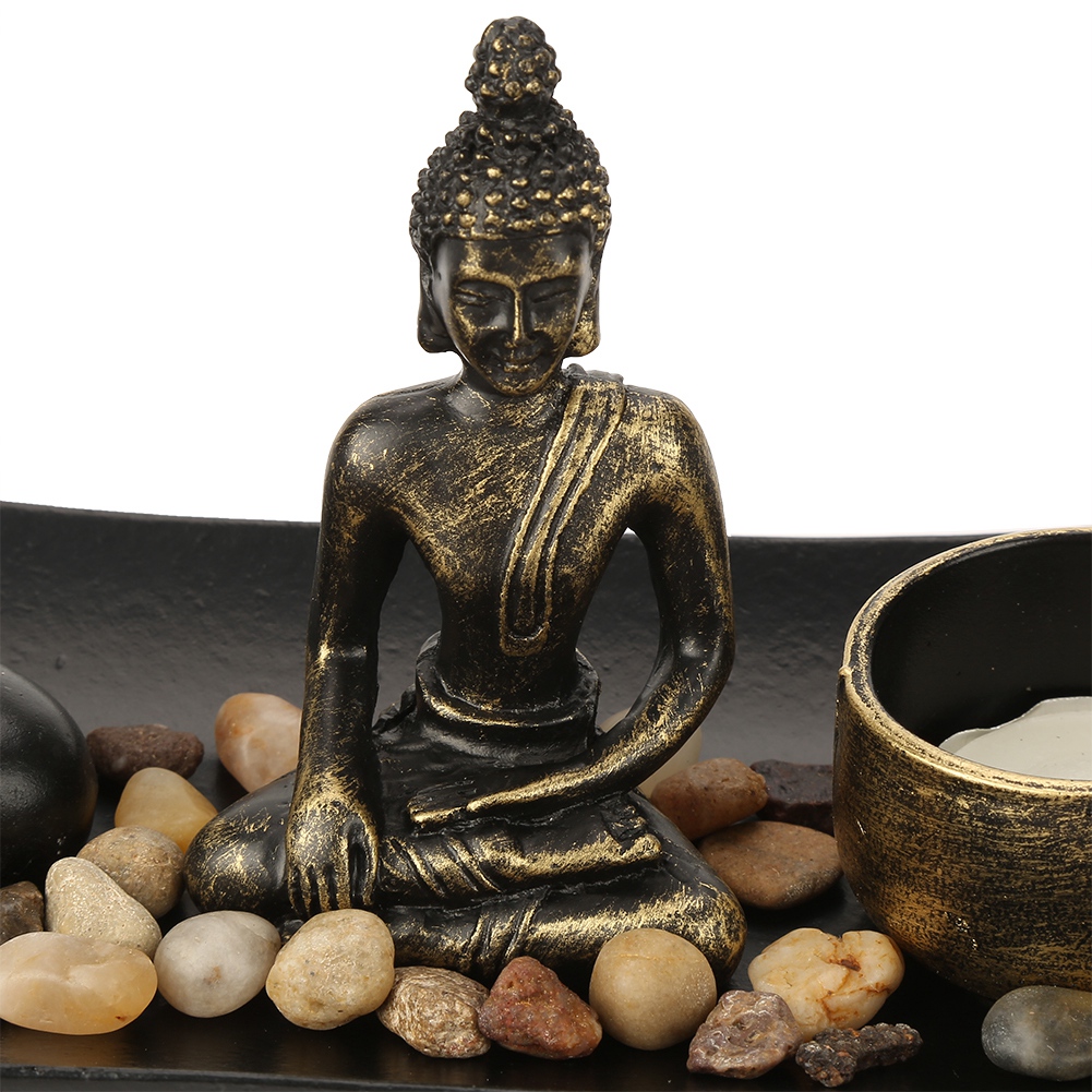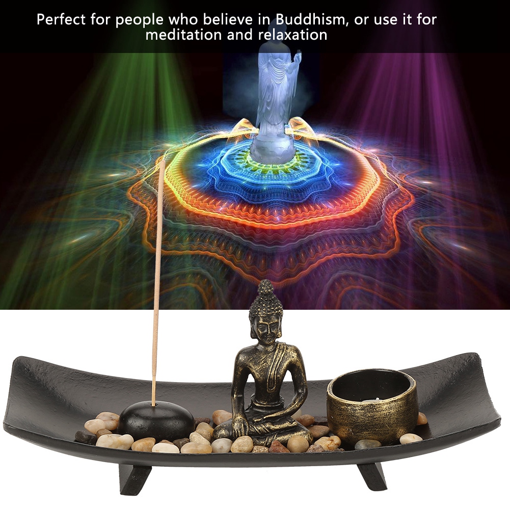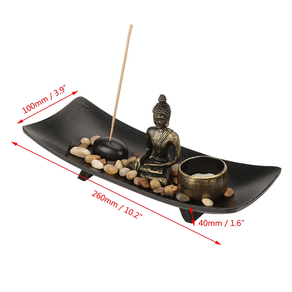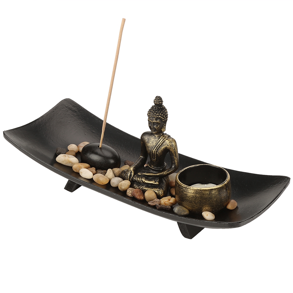 • The layout with a sense of picture: resin Buddha, glass tealight holder, incense stick, incense stick holder, and decoration stones, reveal aesthetic art