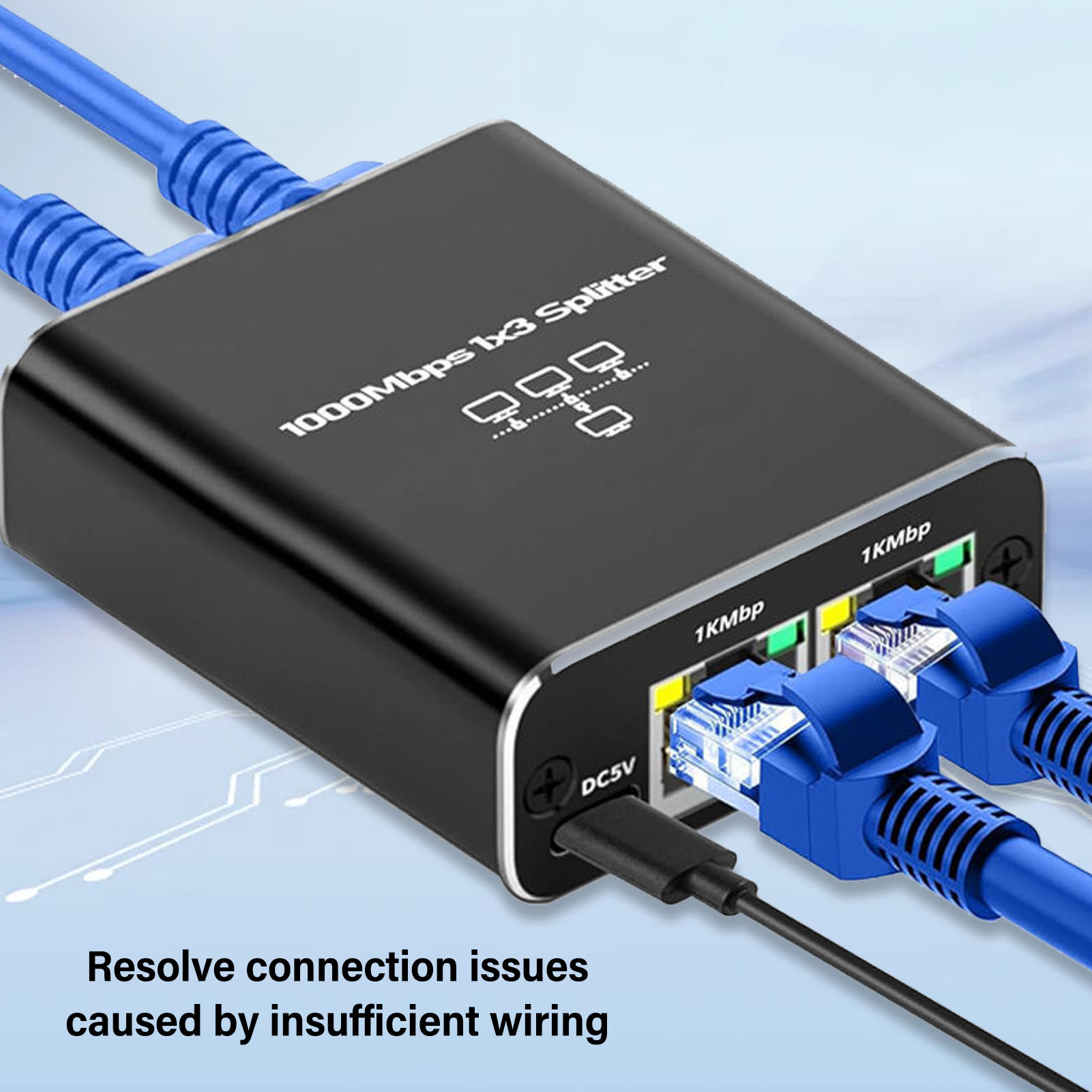1、[Ethernet Splitter] The Ethernet splitter is designed to help you expand network ports and solve connectivity issues caused by insufficient cabling, supporting two computers to share a single Ethernet cable simultaneously. 2、[High Data Throughput] The 1 to 2 Ethernet splitter features a maximum throughput of 1000Mbps on each cable group, providing fast and efficient data transfer without interference between signals, perfect for high volume data transfer. 3、[USB Cable Powered] The Gigabit Ethernet splitter is powered by a USB cable that only requires 5V 1A. Simply plug into your computer without needing any additional software or drivers, making it easy and convenient to use. 4、[Premium Materials] The LAN splitter is built with thick eco friendly PCB circuit board, aluminum alloy casing, RJ45 eight core standard socket, gold plated needle core, integrated mechanical welding, more stable signal transfer, its enclosed insulation module design enhances convenience. 5、[Wide Compatibility] Compatible with Cat8, Cat7, Cat6, Cat5, and Cat5e Ethernet cables, the RJ45 splitter can be used with ADSL, hubs, switches, TV, set top boxes, routers, wireless devices, computers, and more.