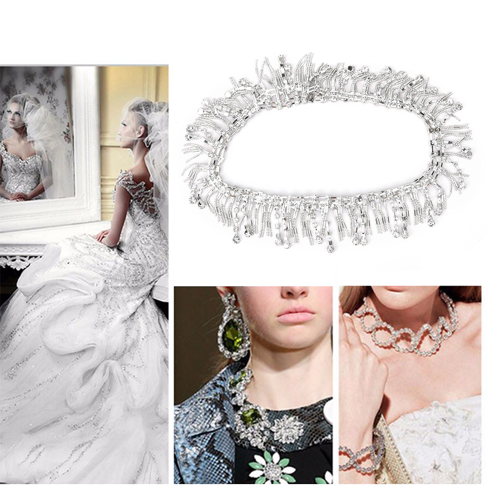 1、Suitable for wedding dresses, dresses, clothes, shoes, headwear, furniture and other high-end diamond chain decoration 2、Shiny AAA crystal glass rhinestone, shiny and beautiful. 3、Electroplated thick silver claw chain, not easy to fade. 4、It can be glued or hand-sewn, tight connection, not easy to fall off. 5、Bring you a lot of DIY pleasure, fully showing your special taste and personality.