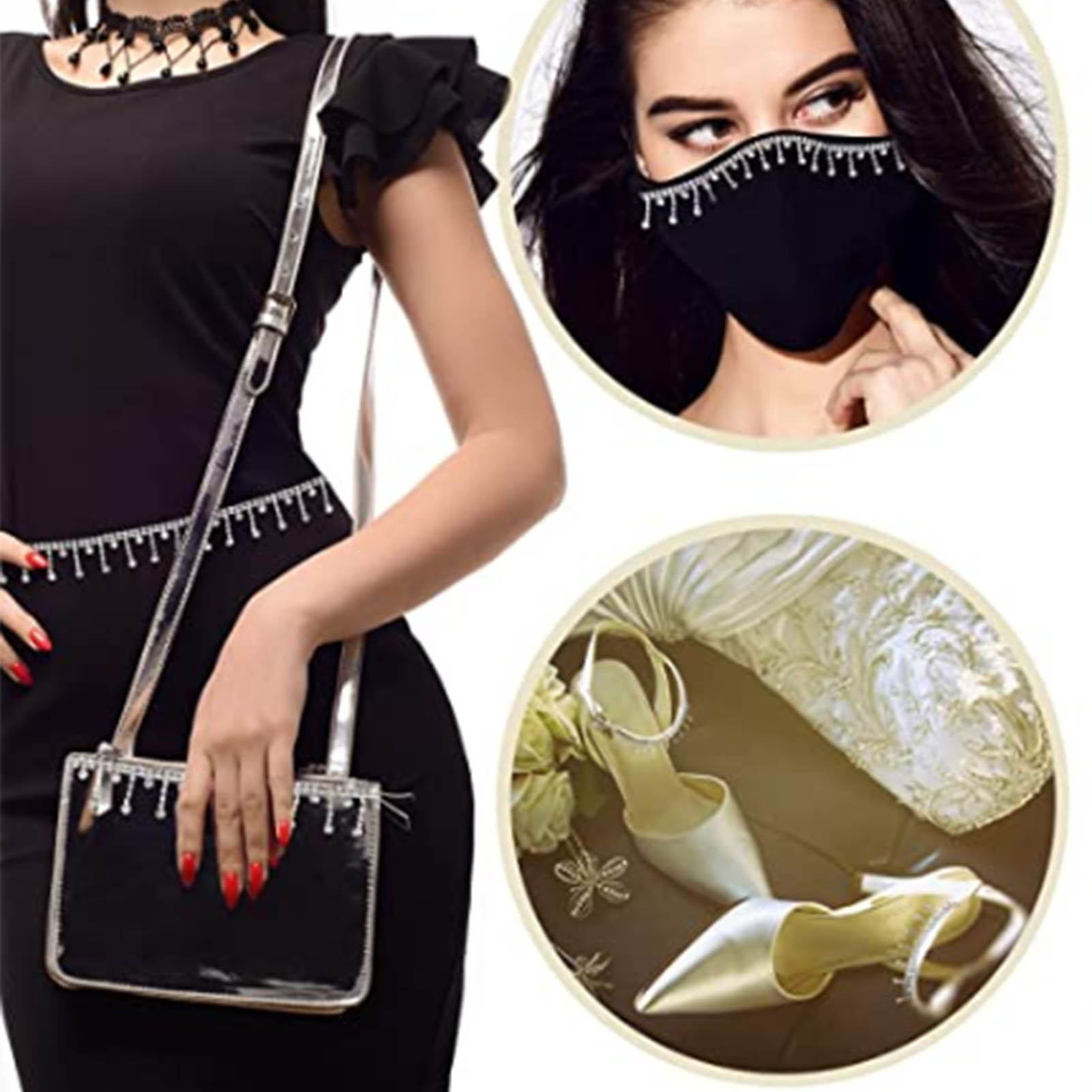 1、Pretty Rhinestones: 3 roll and tassel design makes the shiny and clear rhinestone an eye catching decoration that will better dress you up. 2、1 Yard Long Length: Comes with 12cm width and 1 yard length, that is, 90cm, the rhinestone tassel chain enables free cutting and crafting. 3、Enjoy Your Fun DIY: Enables easy fixing with glue or by hand sewing, the rhinestone fringe with smooth surface will bring more fun to DIY. 4、Better Application: Suits perfectly for various occasion and items, including but not limited to wedding dress, hair pin, handbag and so on. 5、An Excellent Present: A perfect gift for girlfriends, wives, mothers and friends on birthdays, new years, graduation, anniversary and more.