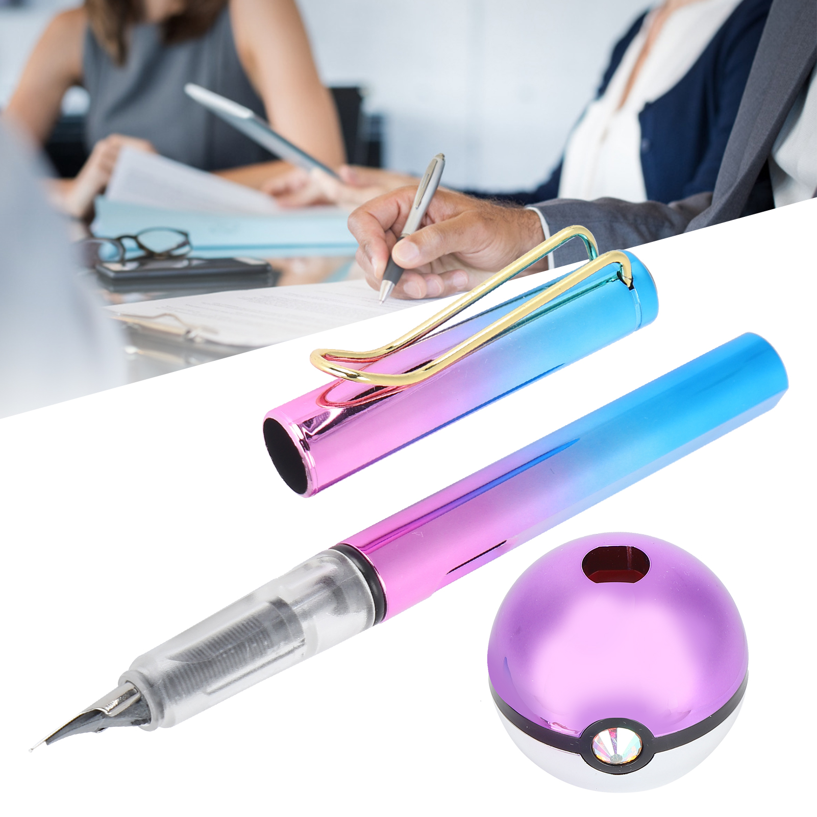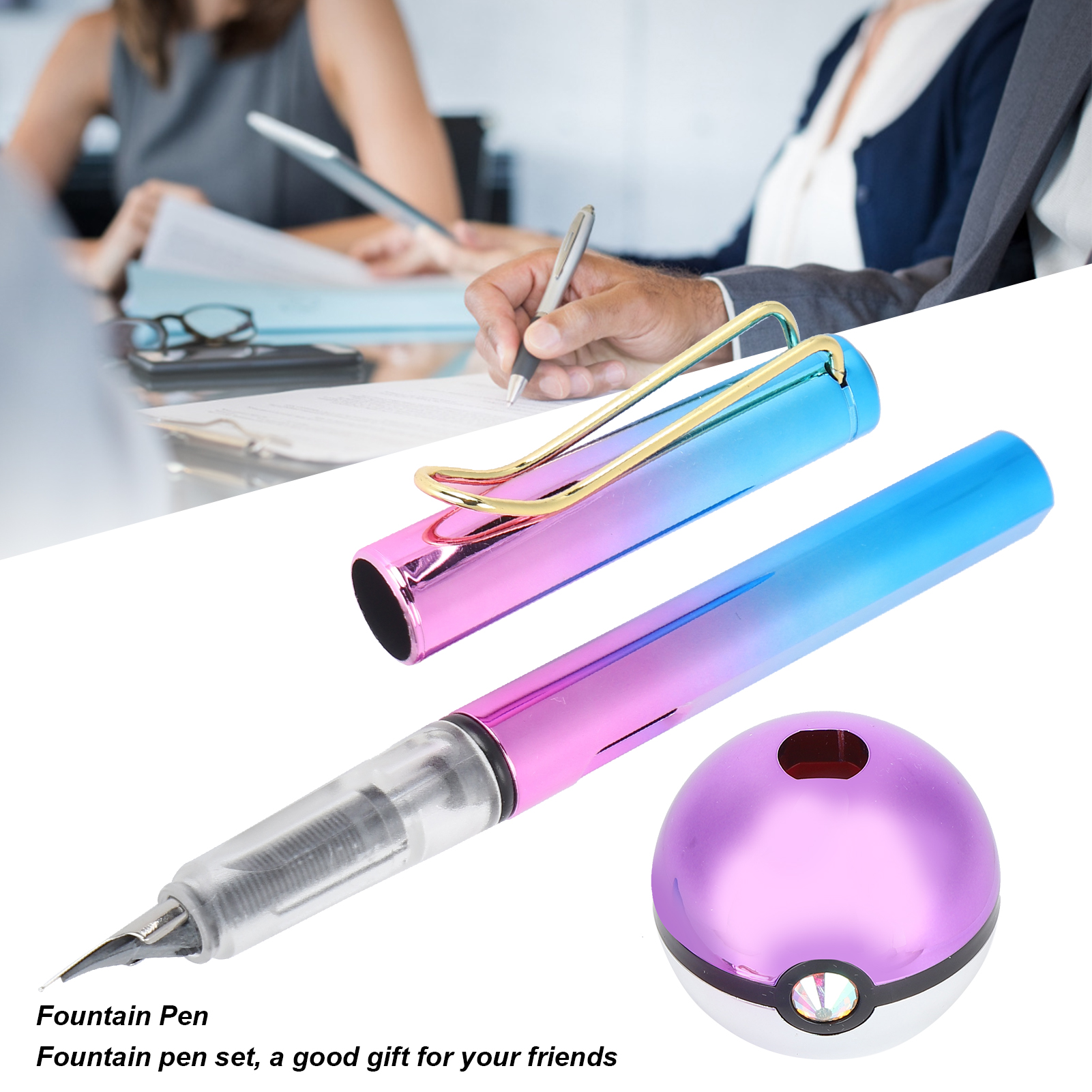 0.38mm Fountain Pen Set 2 Ink Cartridges Smooth Writing Signing Tool with Gift BoxPurple