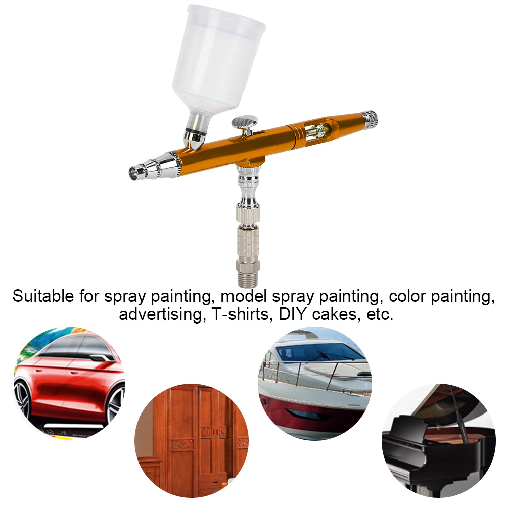 1、Wide range of using, suitable for spray painting, model spray painting, color painting, advertising, T-shirts, DIY cakes, etc. 2、The closer the spraying distance is, the thinner the line is, and the farther the spraying distance is, the thicker it is. 3、Reasonable design, easy to add liquid and clean 4、Tail external adjustment, adjustable spray area and thickness adjustment 5、Connect the airbrush to the air pump with an air pipe, turn on the air pump, adjust the air pump to the appropriate air pressure, and press the airbrush start lever to discharge