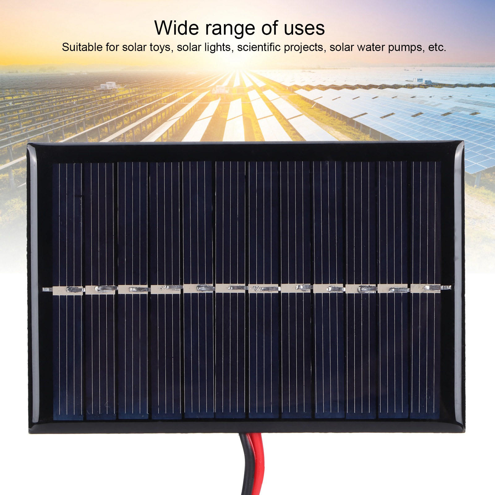 1、Use high‑quality polysilicon material, compressive, corrosion‑resistant and durable. 2、Suitable for solar toys, solar lights, solar displays, electronic applications, and to charge small DC batteries. 3、Absorb sunlight and converts it directly or indirectly into electrical energy through photoelectric or photochemical effects. 4、Easy to install, low power consumption, stable performance, it is the ideal equipment for scientific research projects. 5、Charging for home lighting and various low-power equipment, scientific projects, solar water pumps, small solar systems, etc.