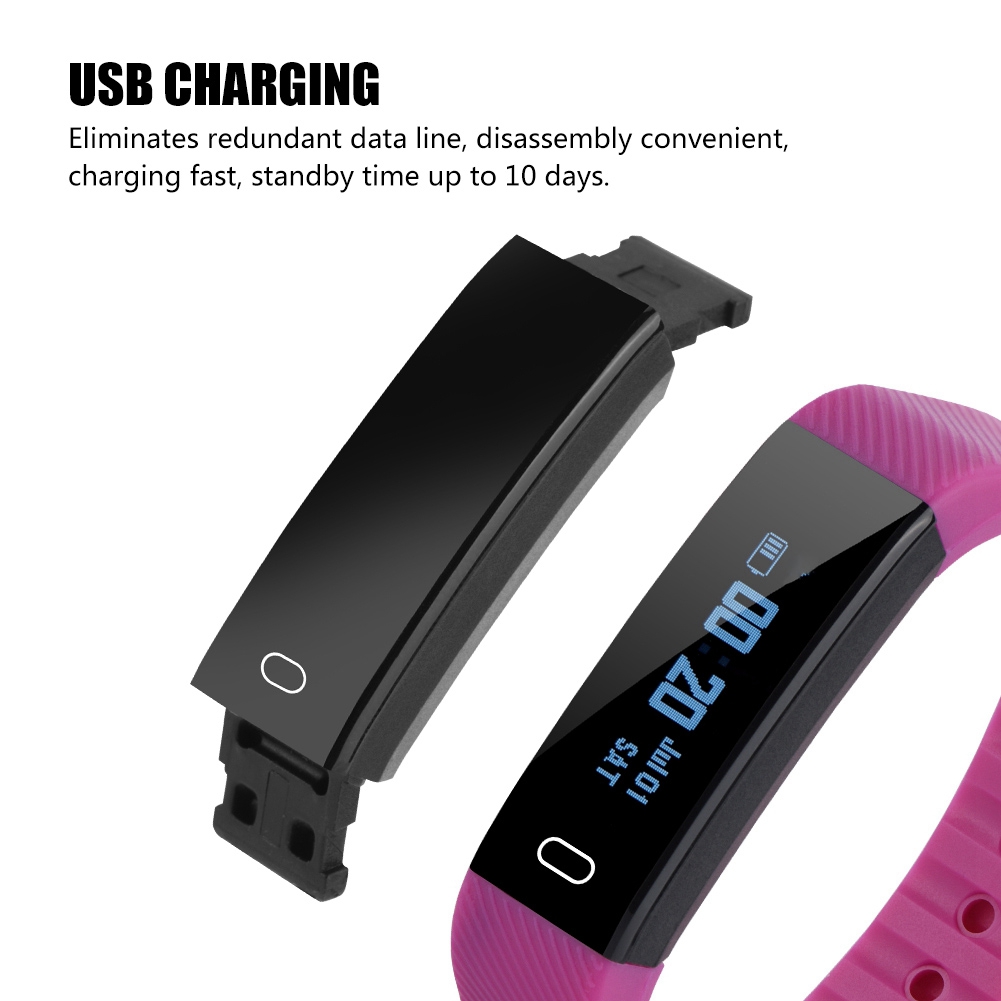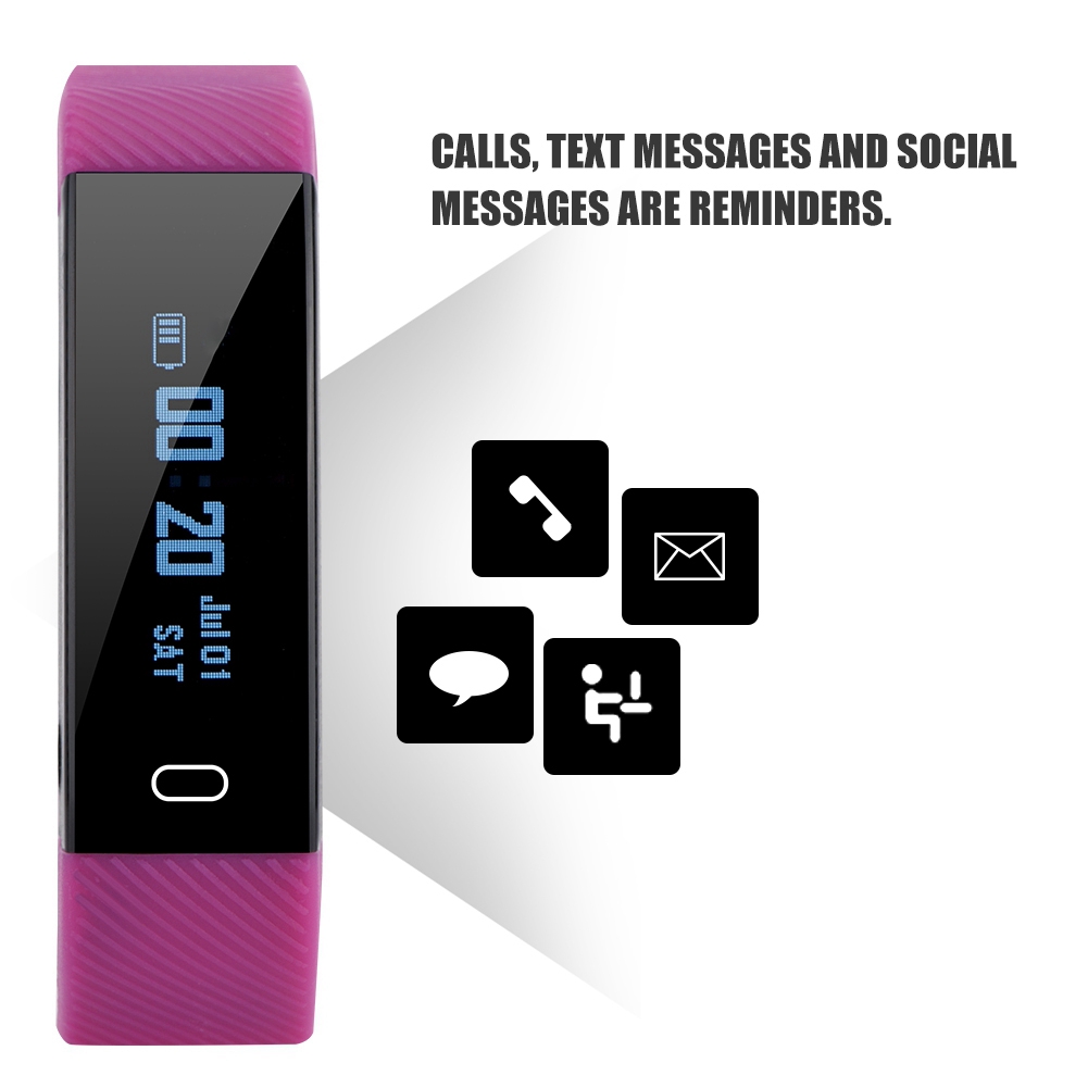 1、Keep track of your daily activity (number of steps, distance, calories burned, duration of activity). 2、Automatic sleep monitoring + alarm clock. 3、Call, SMS and social information to remind you to sit down for a long time. 4、0.86 inch OLED display. 5、The combination of smart and thin, the bracelet only weighs 18g, no sense of wearing.