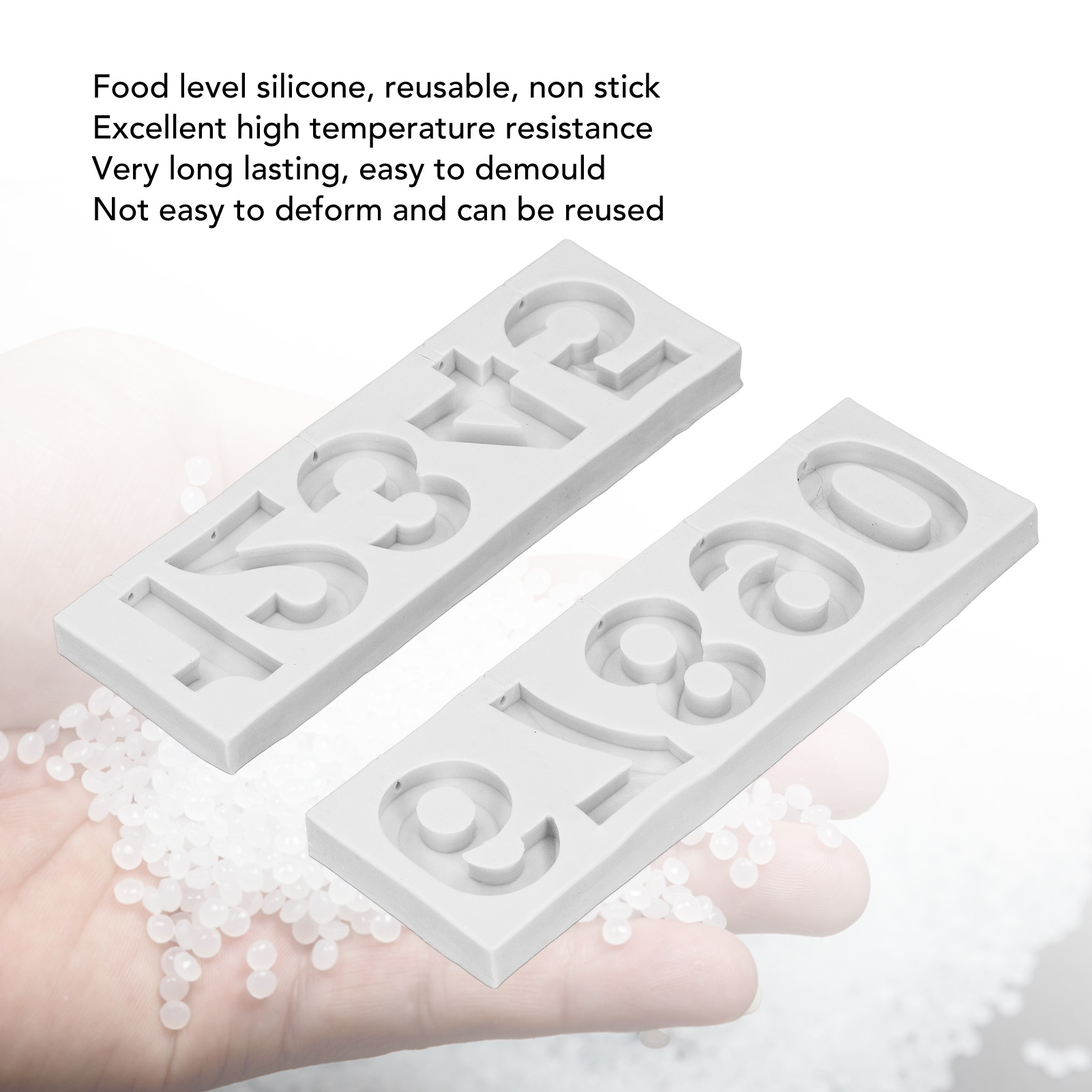 1、SAFE MATERIAL: Number mould is made of excellent food level silicone, which is reusable, non stick, possess excellent high temperature resistance, very long lasting, easy to demould, not easy to deform and can be reused. Perfect for a beginner 2、EASY TO USE AND DEMOLD: These number moulds for cake decorating have smooth inner surface and soft flexibility, non stick, easy to demold. Just pour your favorite ingredients into the letters number moulds, and then push the bottom of the mould with your fingers to release after cool completely. Rating of temperature is from ‑40 degree centigrade to +210 degree centigrade 3、APPLICATION OCCASION: These soft number moulds can be used for birthday party, baby showers, graduation ceremonies, wedding anniversary, Veterans Anniversary, proms, and other occasion. Almost all of the party occasion can use. You can use to make cake topper, cupcake topper, cookie decoration, birthday number candle, ice cream decorations and so on 4、WIDELY USE: These number moulds are fantastic for making candies, gummies, sugarcraft, chocolates, cake decorations, party decorations, birthday party gifts, etc. Suitable for syrup, butter, resin, clay, chewing gum, wax 5、NUMBER CANDLE MOULD: Package includes 2 pieces silicone fondant moulds, a total of 1 set 0‑9 number moulds. You can feel free to match and mix them for different number. You can make candles to decor cakes by these number moulds