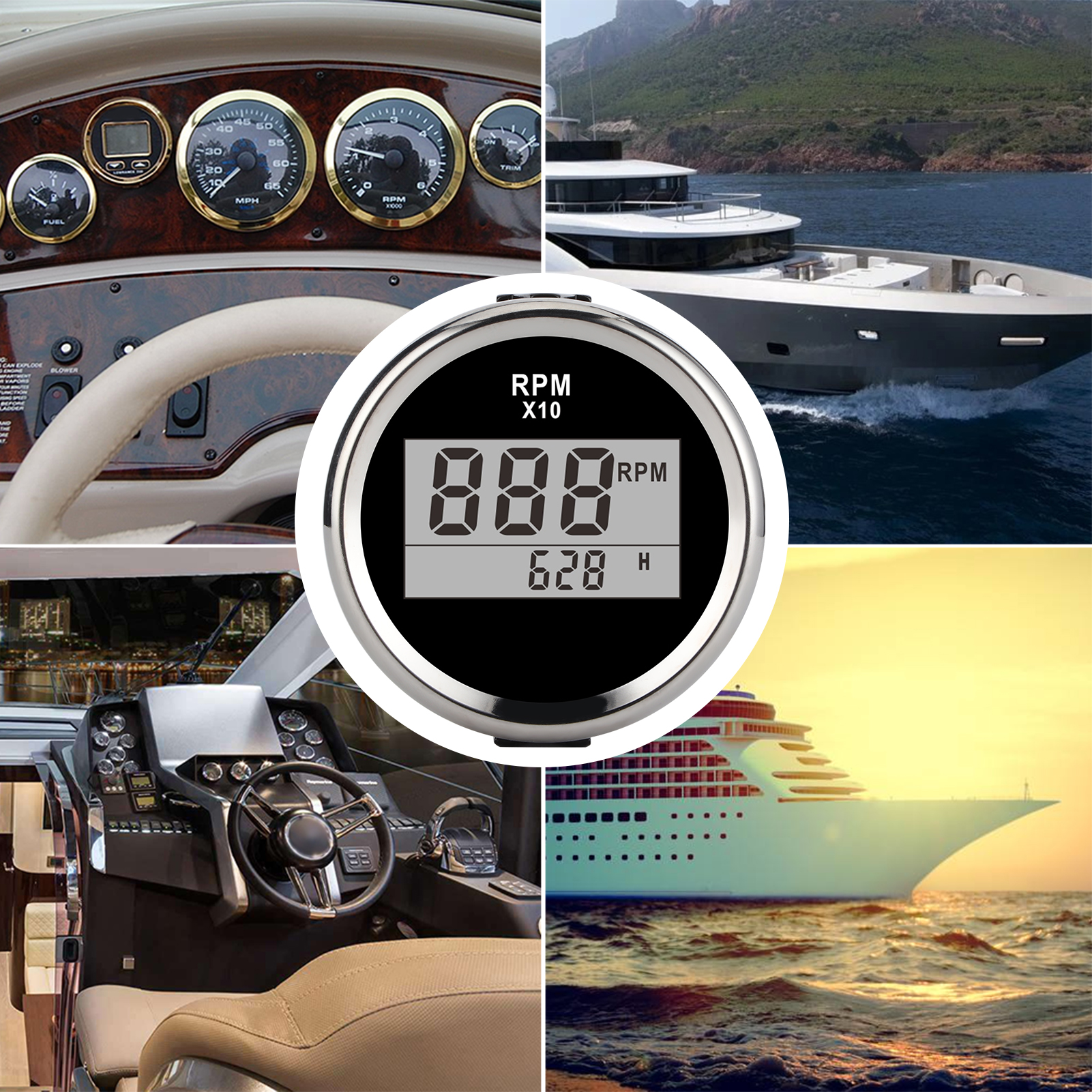 1、It is suitable for the modification of various vehicles. It uses a stepping motor to drive the pointer, accurately displays the engine speed, and has a clear LCD display. 2、It has the advantages of high indication accuracy, repeatability and versatility, reliability and stability, and relatively simple drive and control. 3、IP67 waterproof and dustproof grade, with curved glass (with anti-fog function), suitable for all ships, boats, yachts, etc. 4、With ultra‑wide working voltage design, long‑term operating voltage is 9‑32V, maximum can up to 36V (less than 1 minute). 5、It is suitable for all stepping gauges and has the characteristics of low power consumption, long service life.