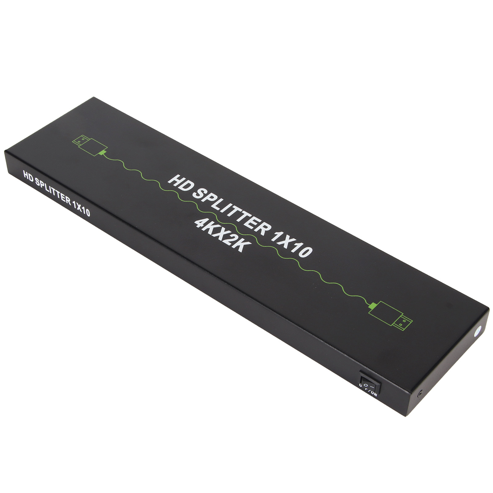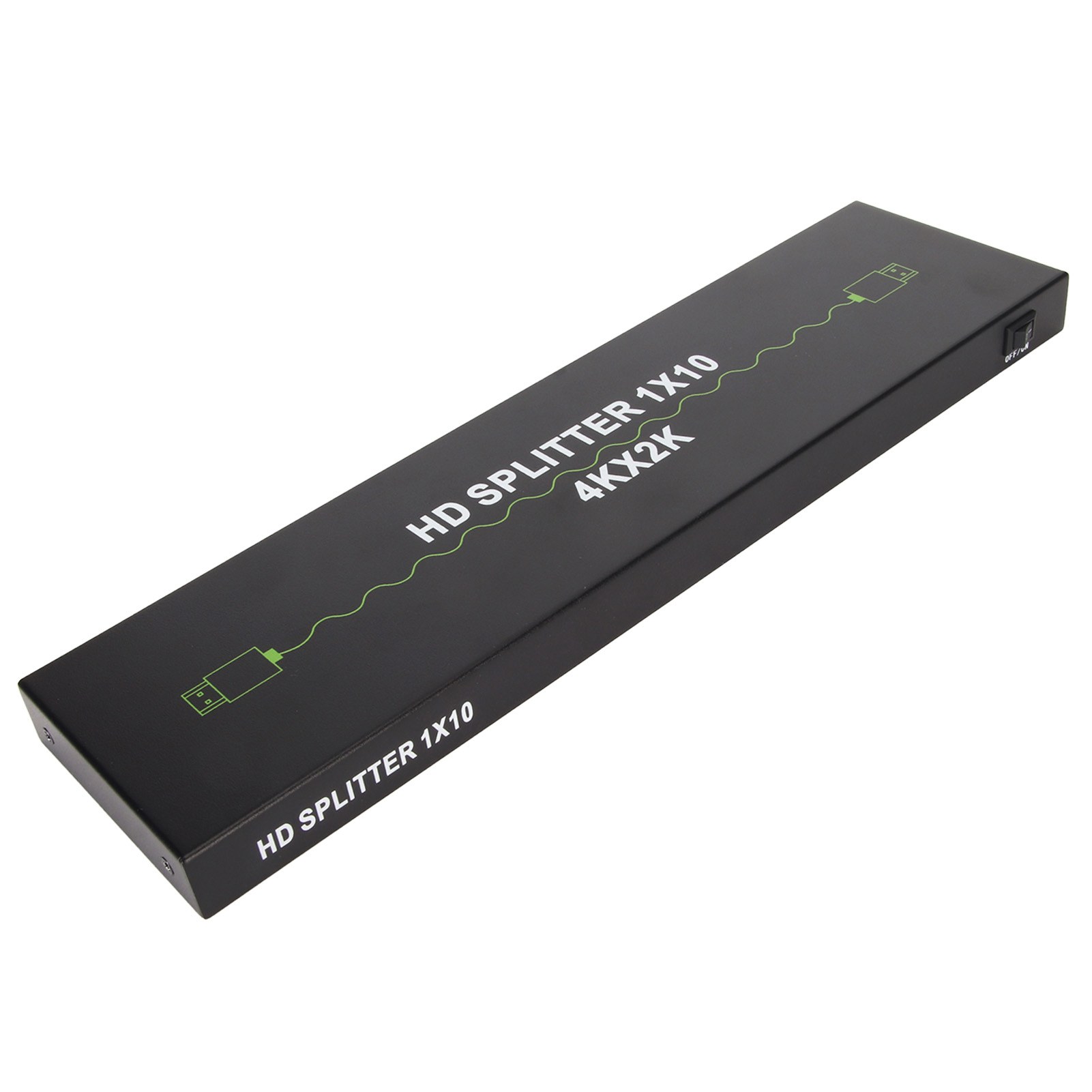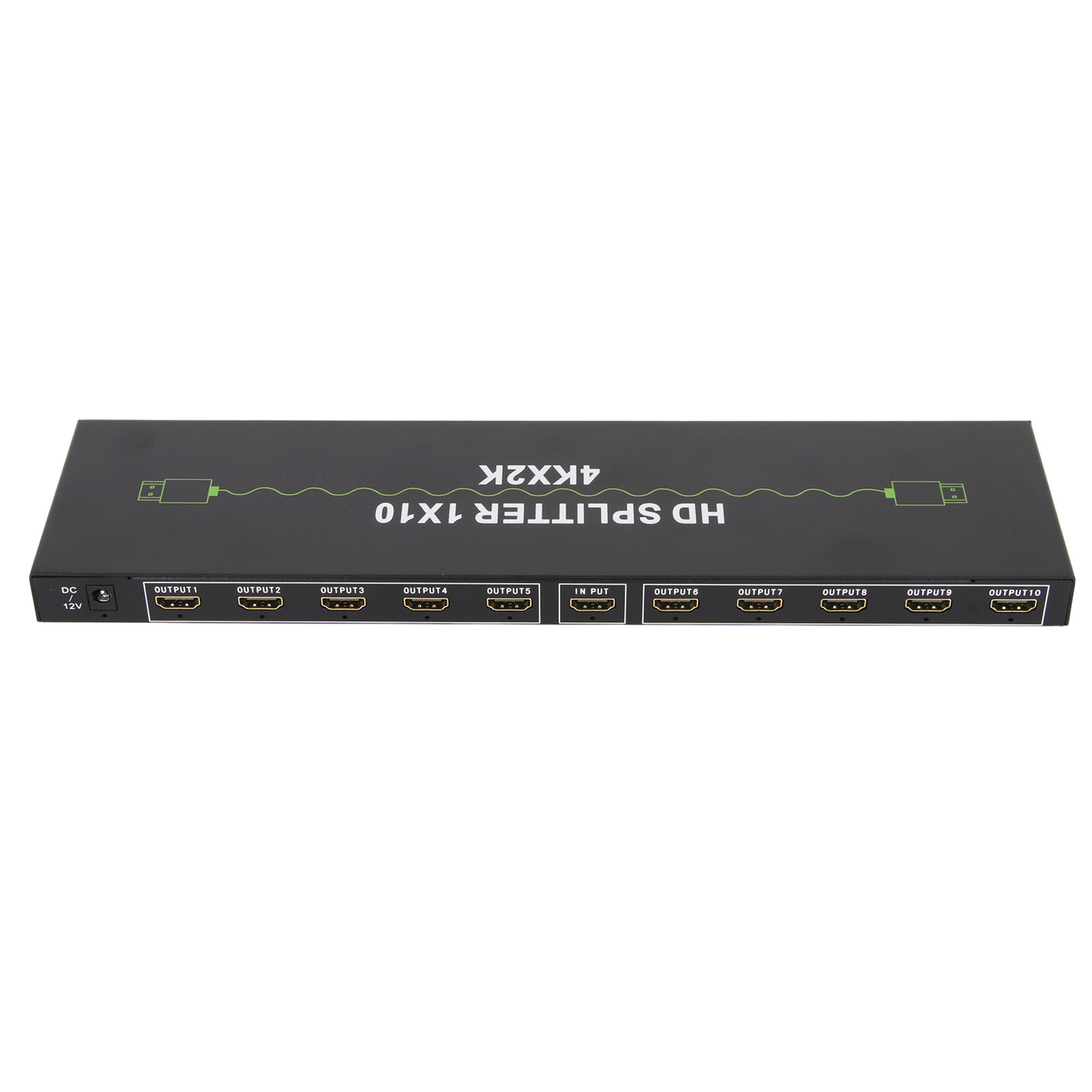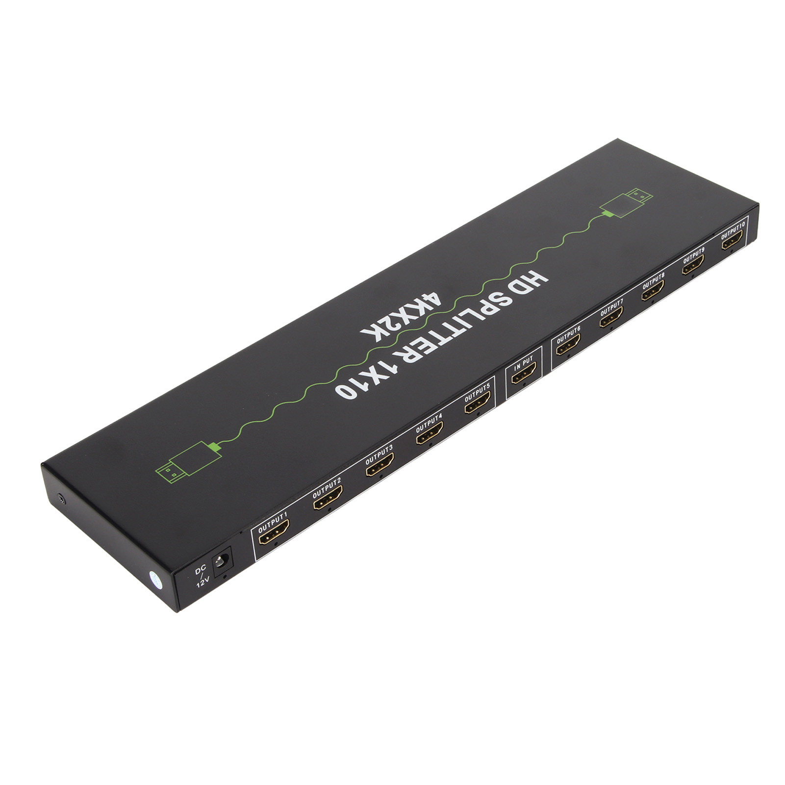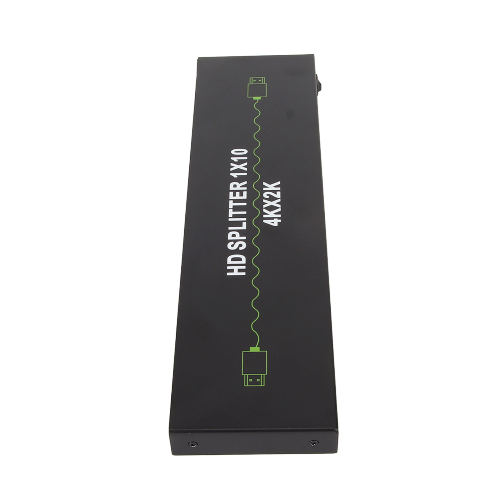 1、1 IN 10 OUT: 1x10 HD Multimedia Interface splitter distributes sound and video signal from a single source to 10 HD Multimedia Interface displays simultaneously. Supports all common sound formats. 2、WIDE USE: It works with all HD Multimedia Interface integrated devices, such as PCs, laptops, fire sticks, game consoles (for Xbox 360, for Xbox One, for PS3 4 5), projectors, TV receivers, televisions (including for iOS TV, for Samsung TV etc.) , VR and others. 3、HIGH RESOLUTIONS: HD Multimedia Interface splitter supports high resolutions up to 4K (3840x2160 30Hz), including 1080P, 1080i, 720p, 576p, 576i, 480P, 480i. Support 8 channel LPCM, 24bit 192khz video. Support 3D images. 4、APPLICABLE DEVICE: 4K HD Multimedia Interface splitter is applicable to source device and high definition display terminal device such as Blue light Players and HDTV which have HD Multimedia Interface interfaces or digital interfaces. 5、PLUG AND PLAY: 1 in 10 out HD Multimedia Interface splitter connects 10 HD Multimedia Interface TVs at the same time to the same video source. It will output the same resolution to all displays. Digital sound format, as DTS HD, for Dolby trueHD, LPCM7.1, DTS, for Dolby AC3, DSD.