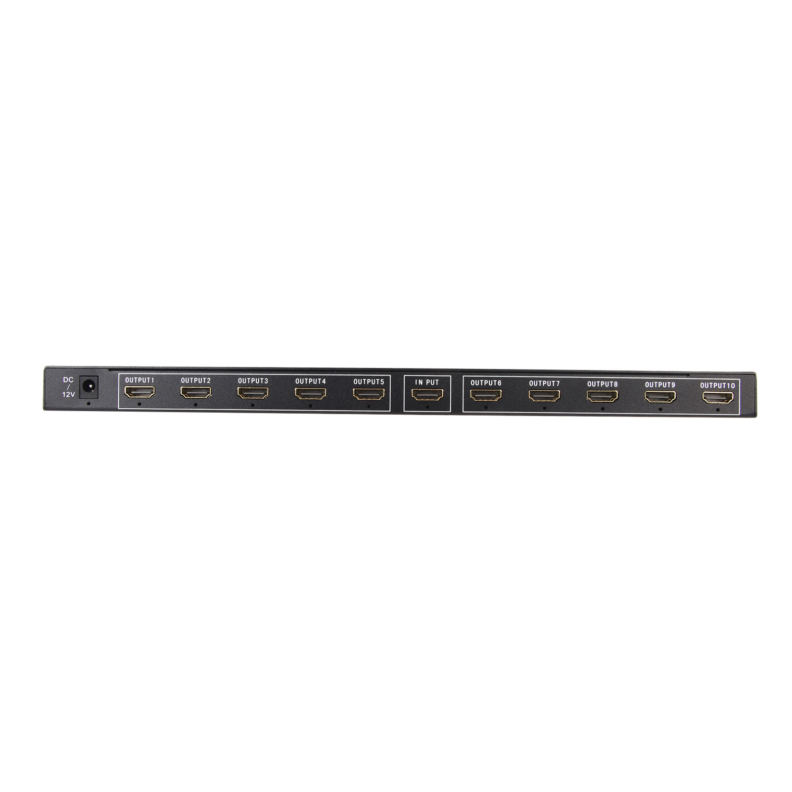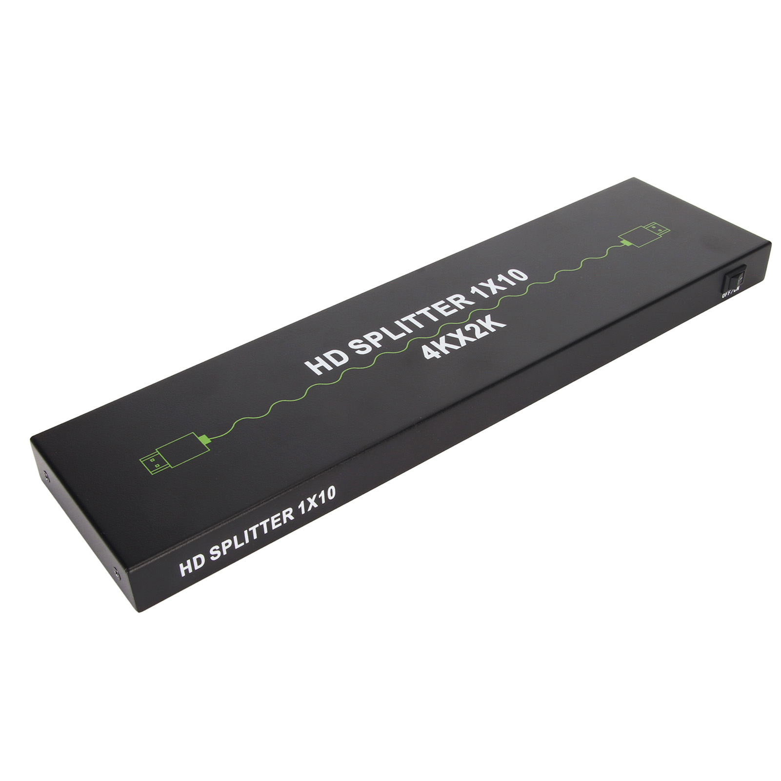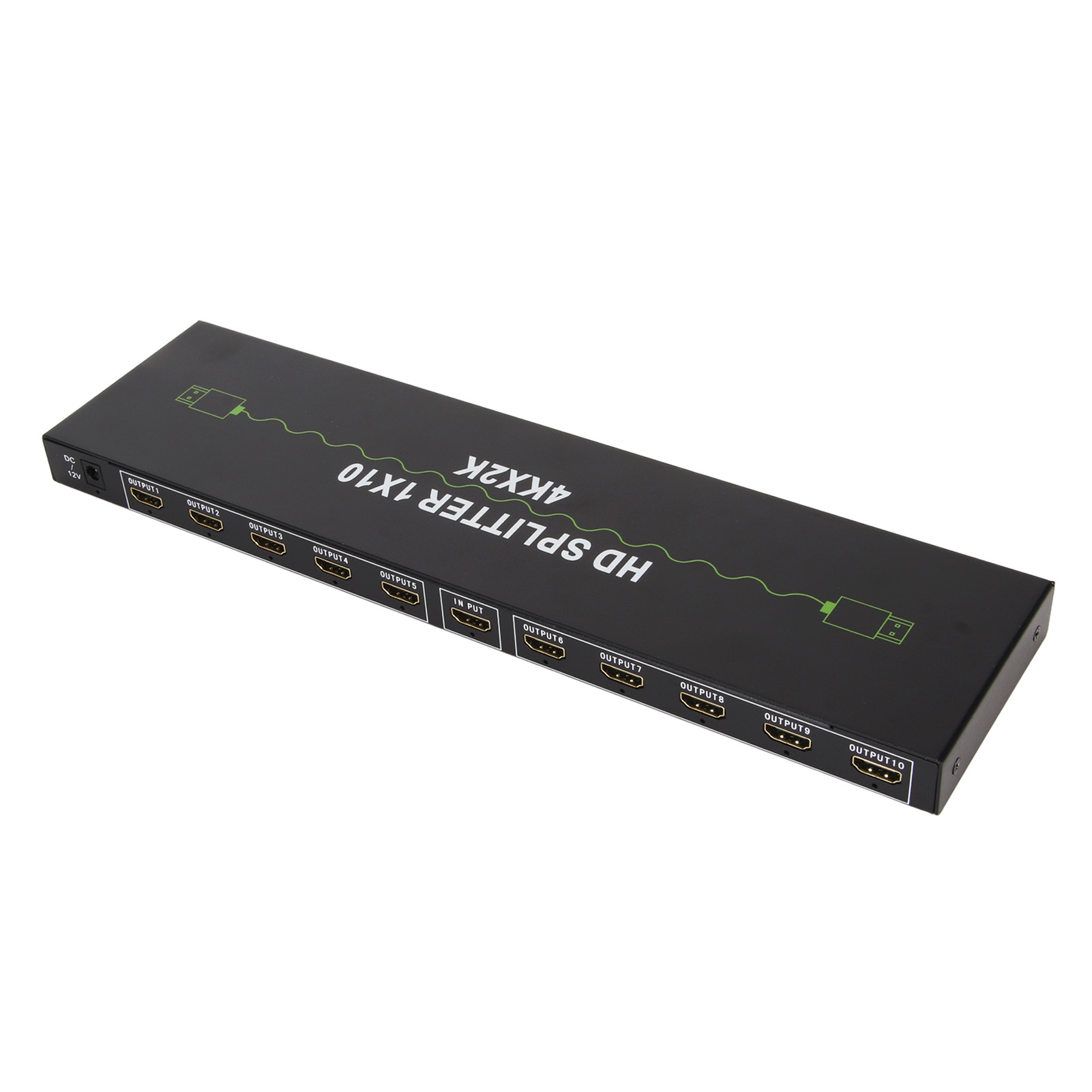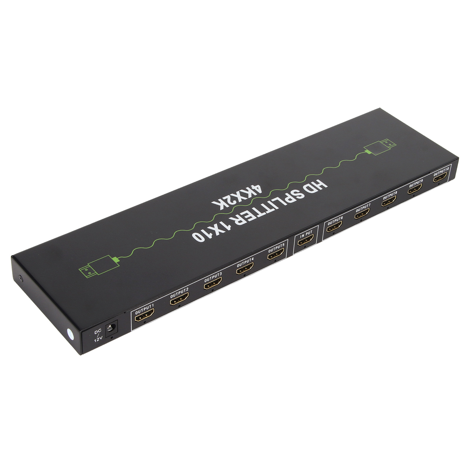 1、1 IN 10 OUT: 1x10 HD Multimedia Interface splitter distributes sound and video signal from a single source to 10 HD Multimedia Interface displays simultaneously. Supports all common sound formats. 2、WIDE USE: It works with all HD Multimedia Interface integrated devices, such as PCs, laptops, fire sticks, game consoles (for Xbox 360, for Xbox One, for PS3 4 5), projectors, TV receivers, televisions (including for iOS TV, for Samsung TV etc.) , VR and others. 3、HIGH RESOLUTIONS: HD Multimedia Interface splitter supports high resolutions up to 4K (3840x2160 30Hz), including 1080P, 1080i, 720p, 576p, 576i, 480P, 480i. Support 8 channel LPCM, 24bit 192khz video. Support 3D images. 4、APPLICABLE DEVICE: 4K HD Multimedia Interface splitter is applicable to source device and high definition display terminal device such as Blue light Players and HDTV which have HD Multimedia Interface interfaces or digital interfaces. 5、PLUG AND PLAY: 1 in 10 out HD Multimedia Interface splitter connects 10 HD Multimedia Interface TVs at the same time to the same video source. It will output the same resolution to all displays. Digital sound format, as DTS HD, for Dolby trueHD, LPCM7.1, DTS, for Dolby AC3, DSD.