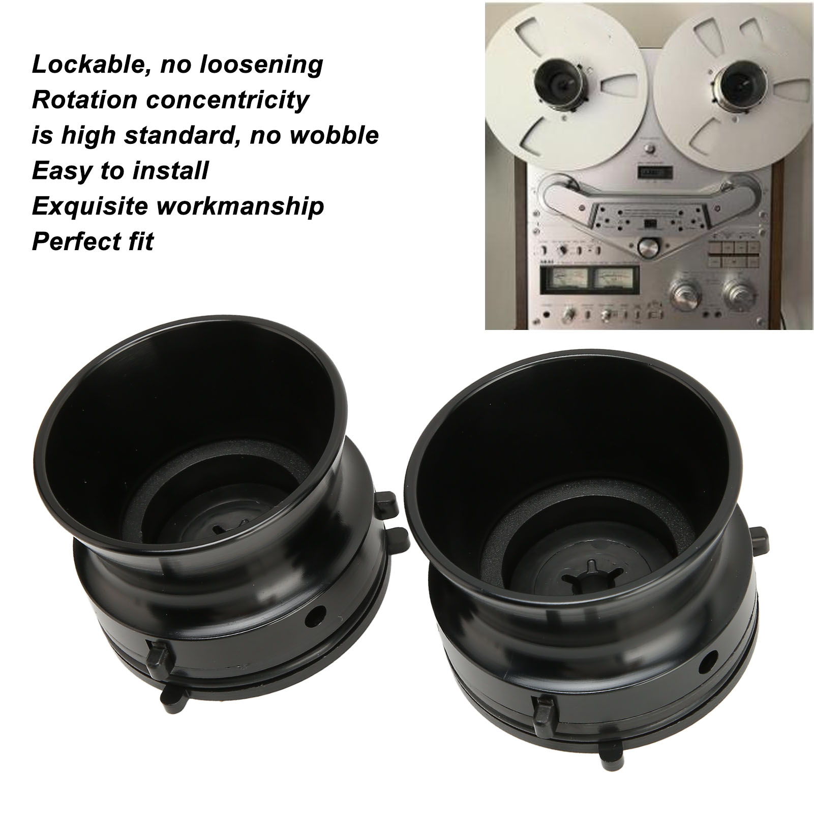 1、Wide Compatibility: 10 inch opener is perfectly suitable for Studer ReVox, for Akai, for Teac, etc. 2、Lockability: for studer revox NAB hub adapters has strong lockability, super lock and no looseness. 3、Rotation Concentricity: for studer revox NAB hub adapters, the rotation concentricity is of high standard, and it does not swing. 4、High Accuracy: 10 inch opener is made by accuracy machining, with perfect size and easy installation. 5、Premium Material: 10 inch opener is made of premium aluminum alloy and plastic, which is durable, corrosion resistant and has a long service life.