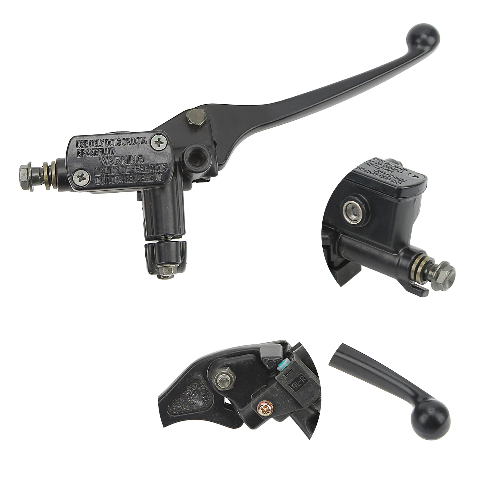 1、Perfect Fitment: Brake clutch master cylinder lever fits for Gy6 50cc 110cc 125cc 150cc 250cc scooter, perfect matching. 2、High Quality Material: Brake lever is made of high quality metallic aluminium material, rustproof, high strength, sturdy and durable. 3、Professional Design: Professional manufacturing, exquisite workmanship, comfortable hand feeling, greatly improves the sensitivity and driving safety. 4、Strict Standards: Built to greatly quality control standards, brake clutch master cylinder has stable performance and high reliability. 5、Easy Installation: Easy to install, direct replacement for the old or broken one, convenient for using, save your time and energy.