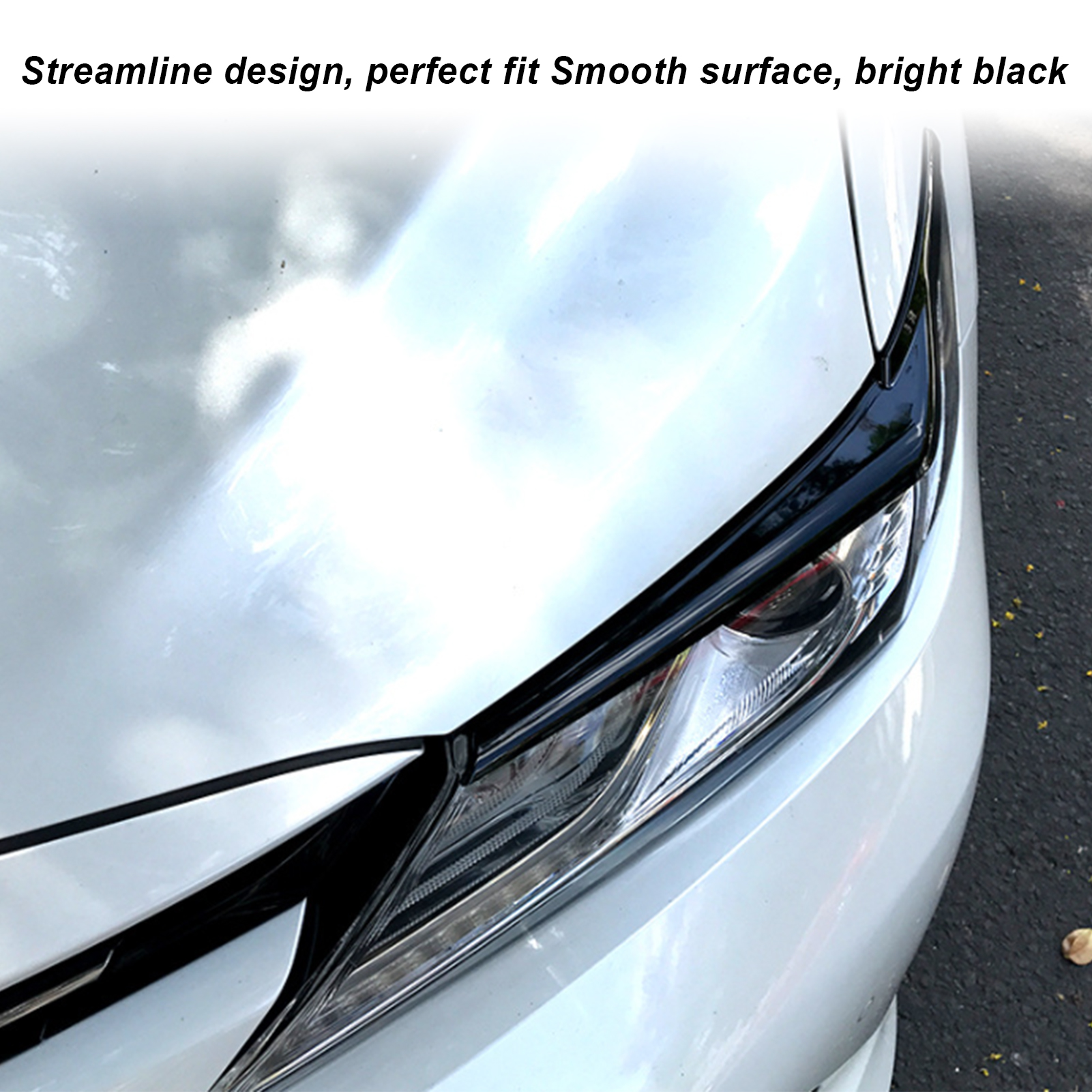 1、Fitment: Headlight eyebrow is replacement for Camry 2018‑2023, which is made according to the prototype of the car. 2、Function: Headlamp eyebrow provides strong protection for your car, prevent scratches and dust on the surface of car headlights. 3、Stylish Appearance: Streamline design, perfectly fit the original headlight curve, smooth surface and bright black make your car more sporty. 4、Features: The cover can protect the cleanliness of headlamps and maintain high brightness of headlamps, giving you a new look. 5、Durable Construction: High strength ABS construction for maximum durability, wear resistant and scratch resistant.