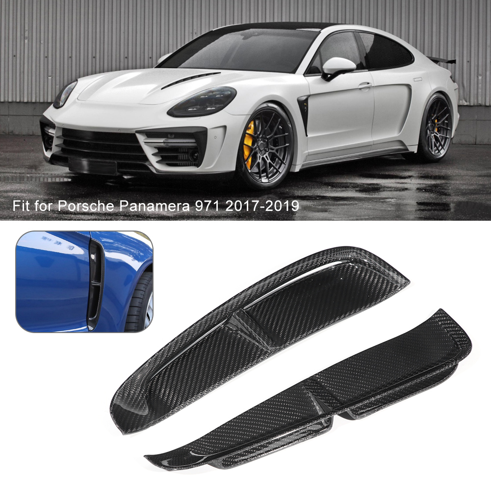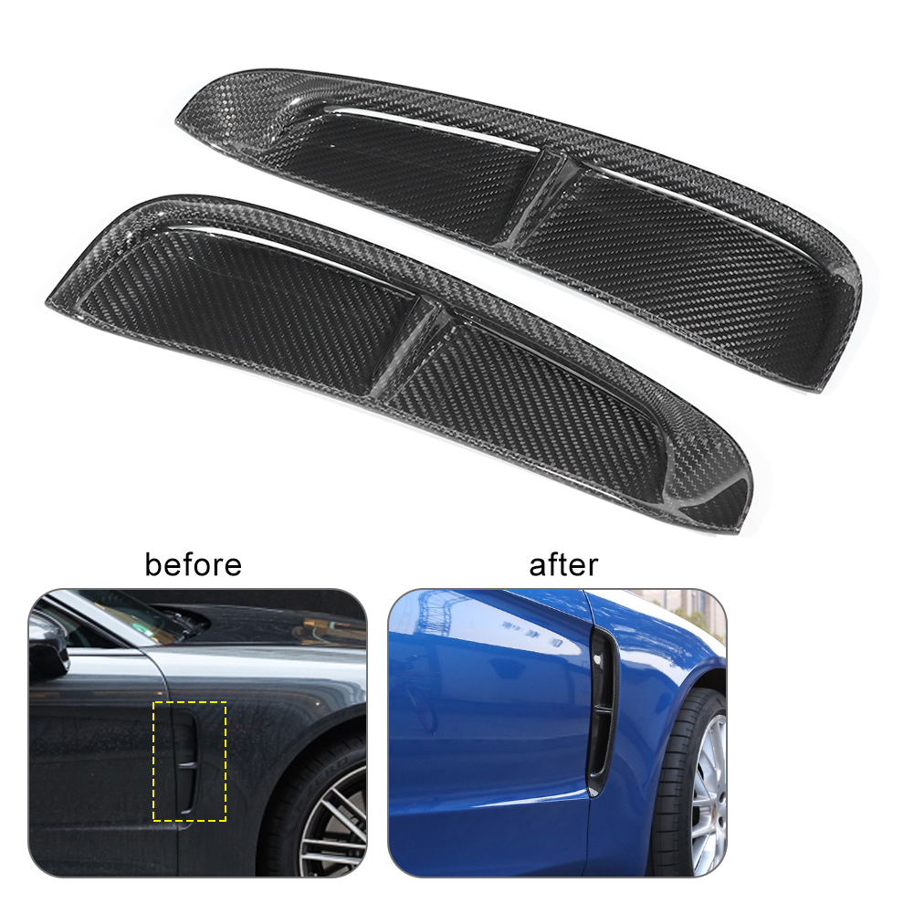 1、Real carbon fiber 3D stereo effect plus crystal dripping surface, three-dimensional effect significantly increased, highlight the personality. 2、Features with durable, UV-resistant, and scratch-resistant. 3、Carbon fiber appearance adds a luxurious and elegant feeling to your car. 4、It can effectively protect your air fender from damage, more practical in use. 5、Enhanced aerodynamics, creating a good experience for you. 6、Particularly fit for Porsche Panamera 971 2017-2019.