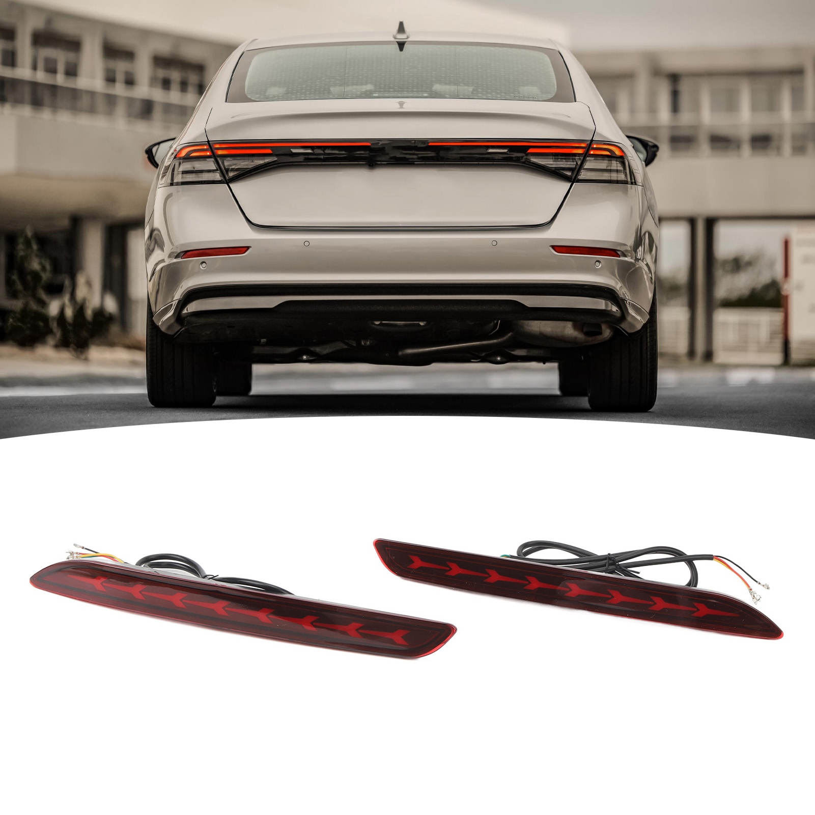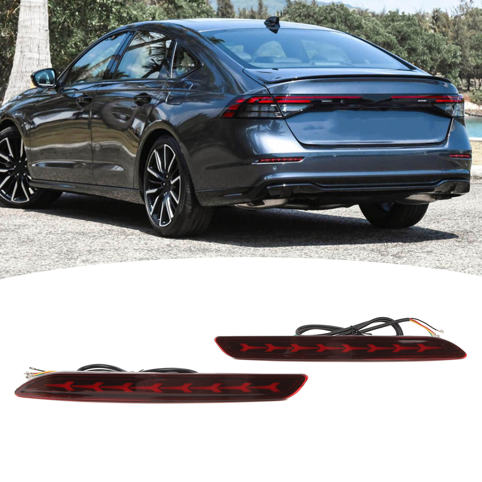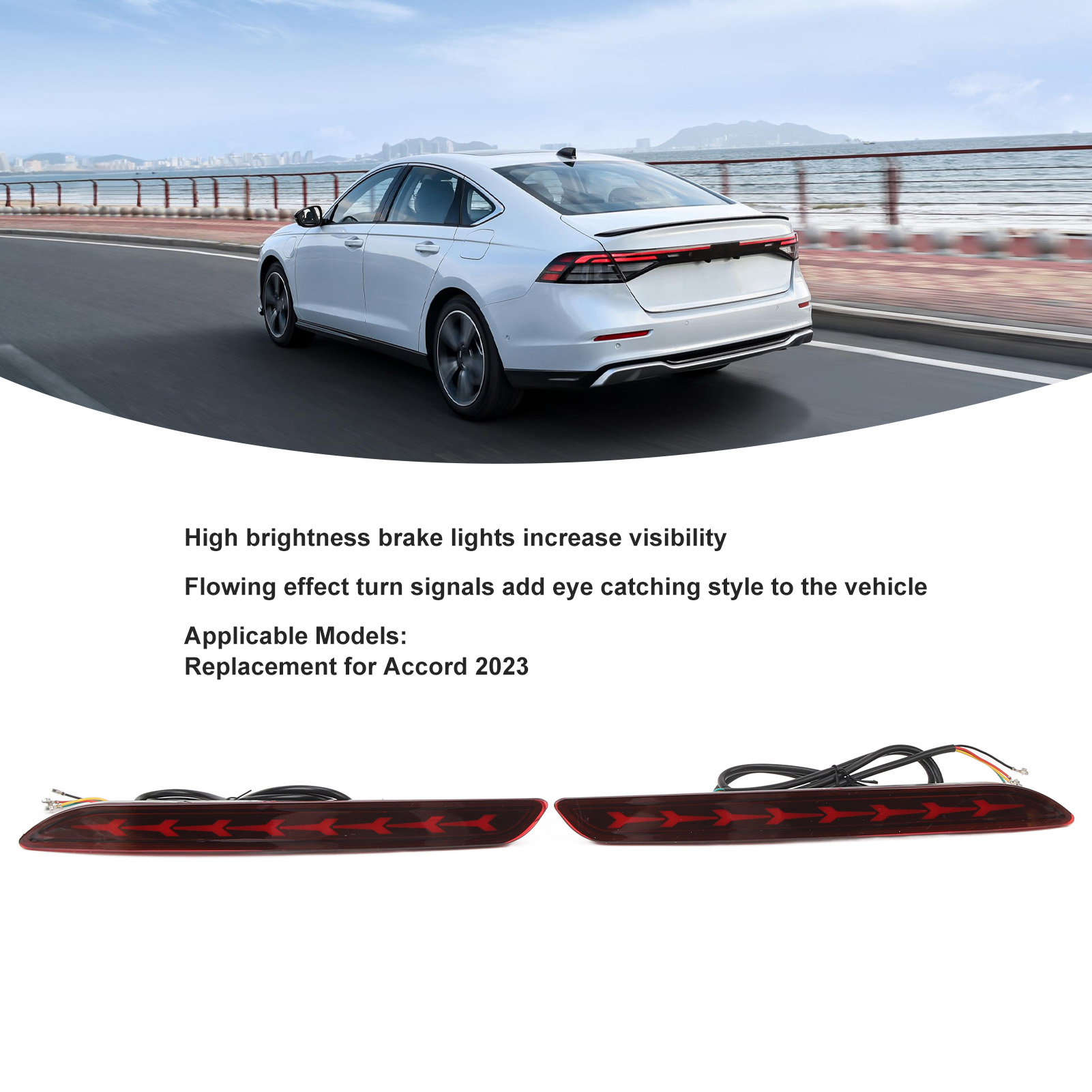 1 Pair LED Rear Bumper Light Left Right Waterproof Tail Turn Signal Brake Lamp Replacement for Accord 2023 Fishbone Red Lens