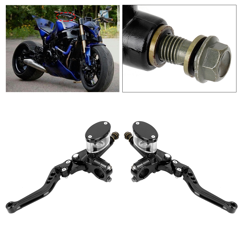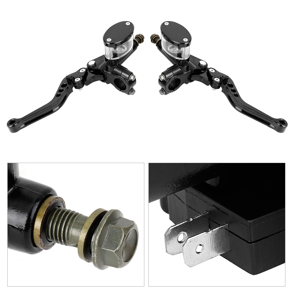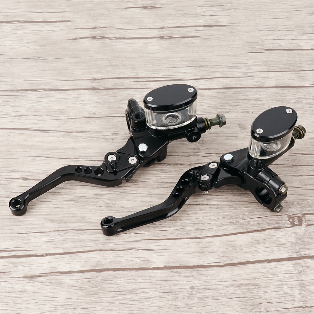 1 Pair Motorcycle 7/8in Aluminum Master Cylinder Reservoir Hydraulic Brake Clutch Lever Black