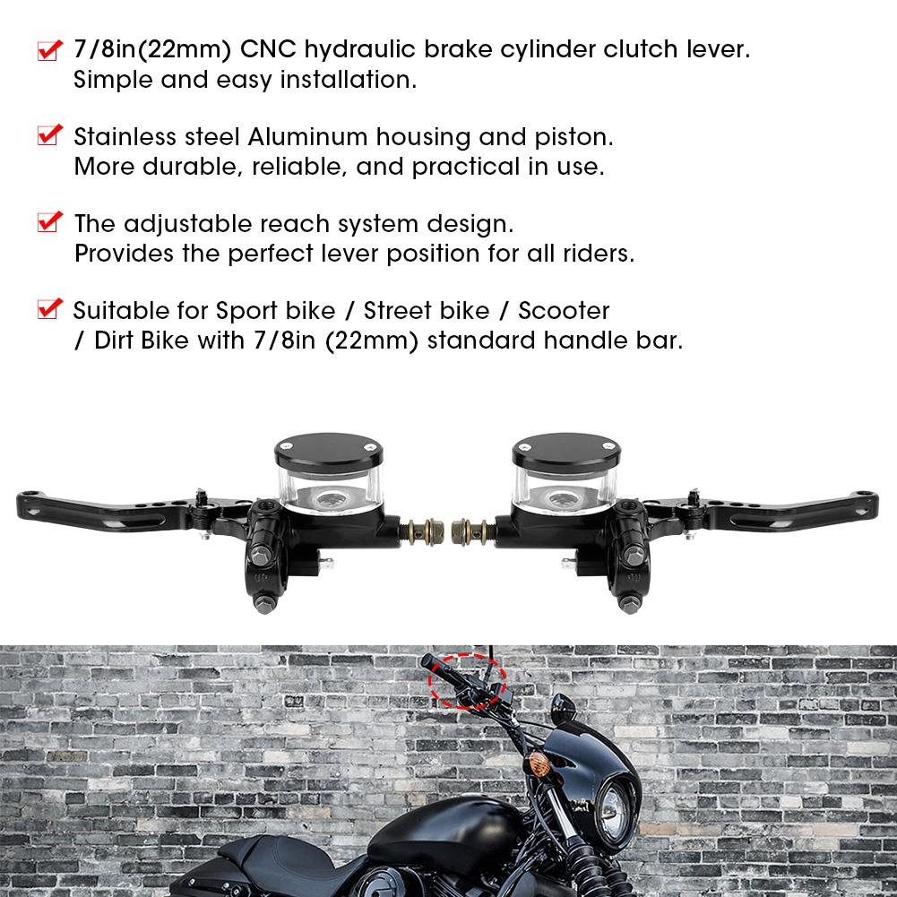 • 7/8in(22mm) CNC hydraulic brake master cylinder and clutch lever, can help you operate your car well.