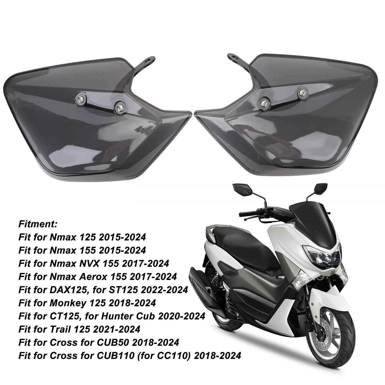 1、Applicable Model: The handguard is for Nmax 125 155 NVX Aerox, for DAX125 ST125 Monkey CT125 Trail Cross. Please confirm whether it is consistent with the product you want before buying to avoid unnecessary return. 2、Sturdy Structure: The hand guard features high hardness ABS structure, sturdy and reliable, ensuring long lasting protection for your hands on the road. 3、Efficient Protection: The protective handguard shields your hands from brush, rocks, mud, and cold wind, providing a comfortable and safe riding experience in various weather conditions. 4、Enhanced Comfort and Appearance: Enhance both your comfort and your bike's appearance with the handlebar protector, can be attached to the end of the handlebars for easy installation and a stylish look. 5、Easy Installation: The handlebar hand guard has a simple installation with no drilling or cutting required, no complex tools needed. Easy to install directly onto your bike, seamlessly blending into the motorcycle's exterior.