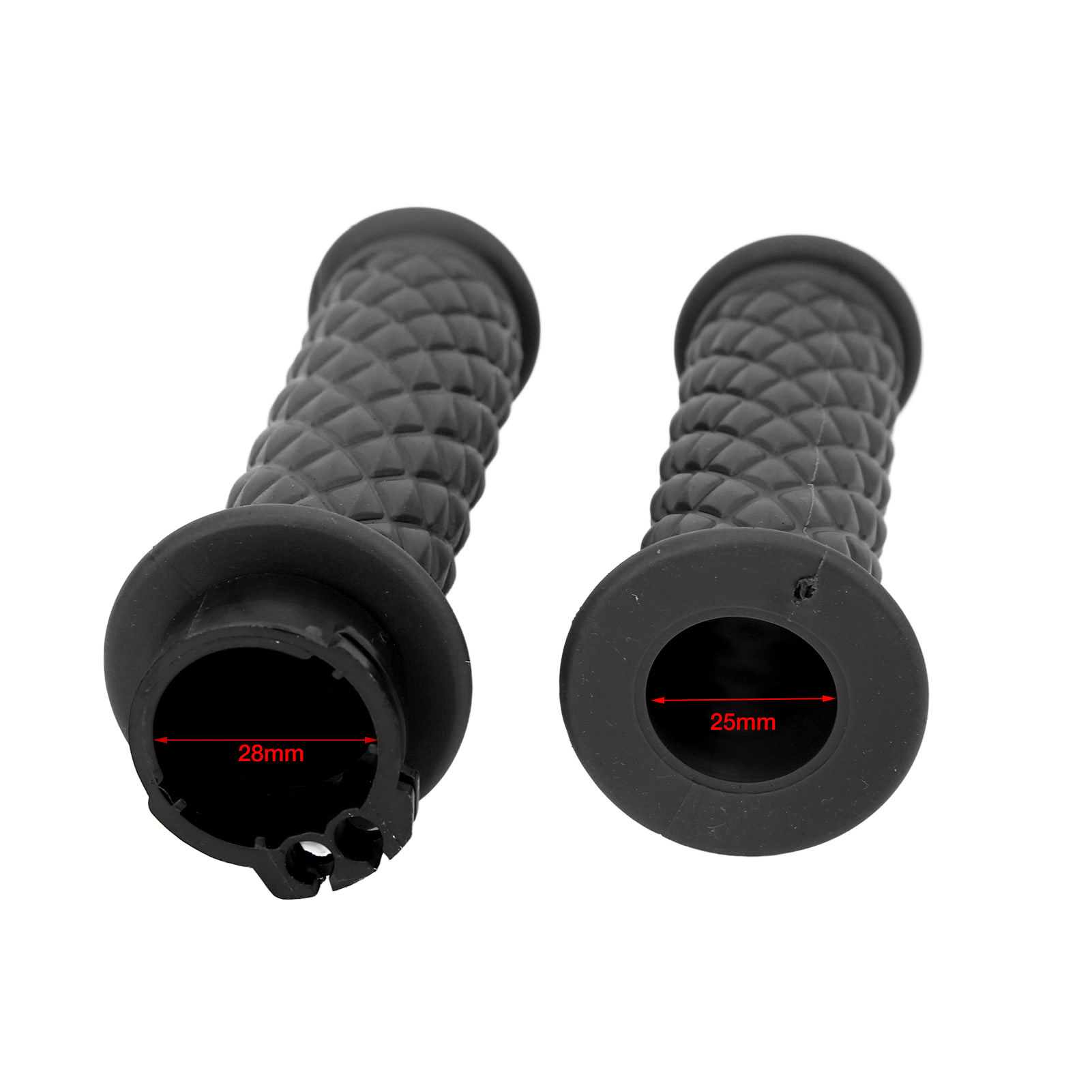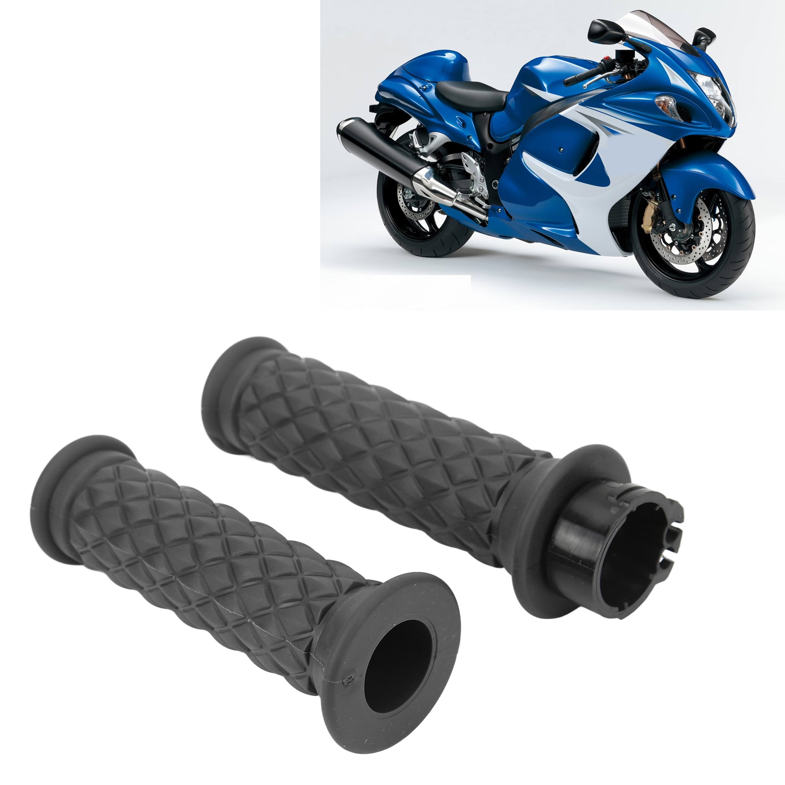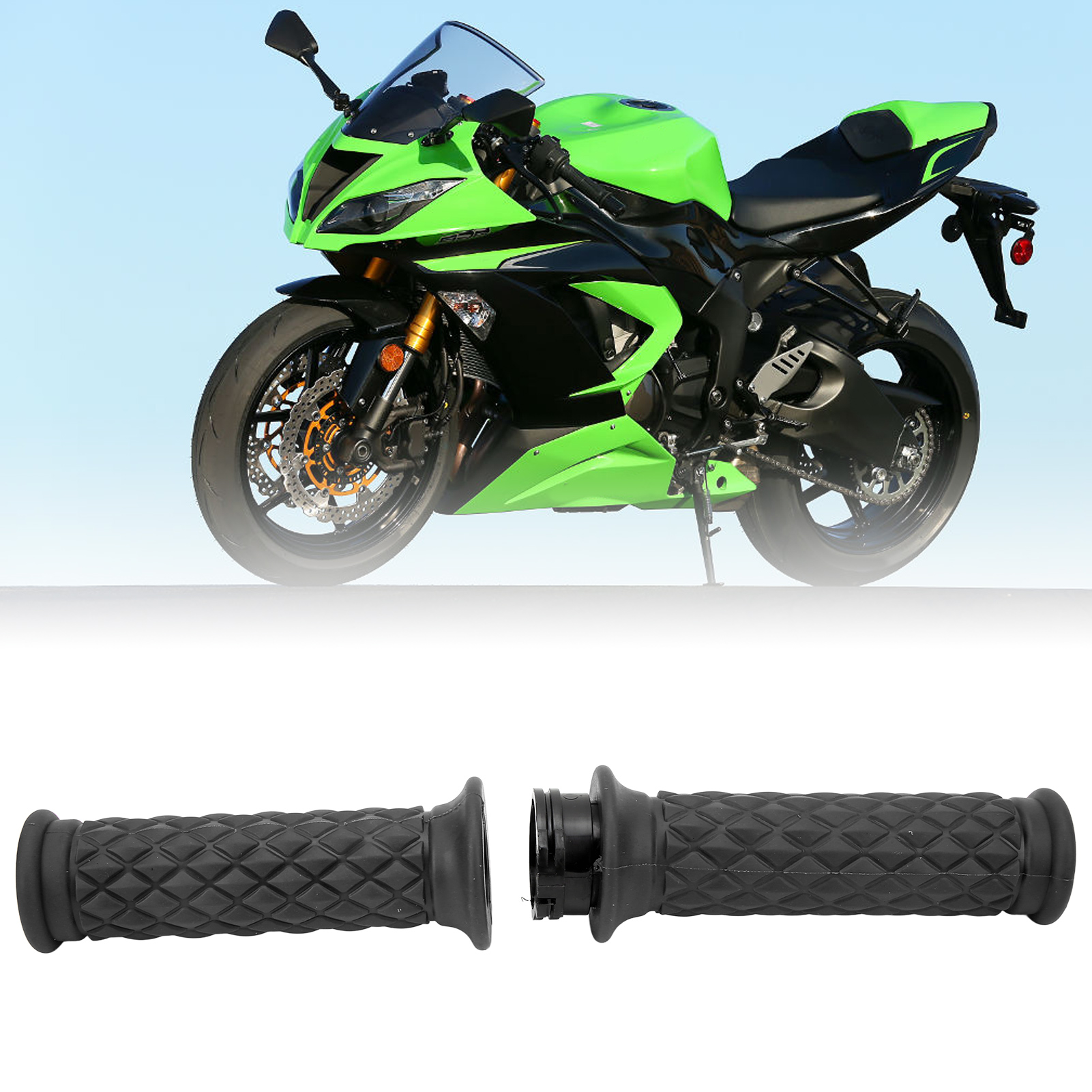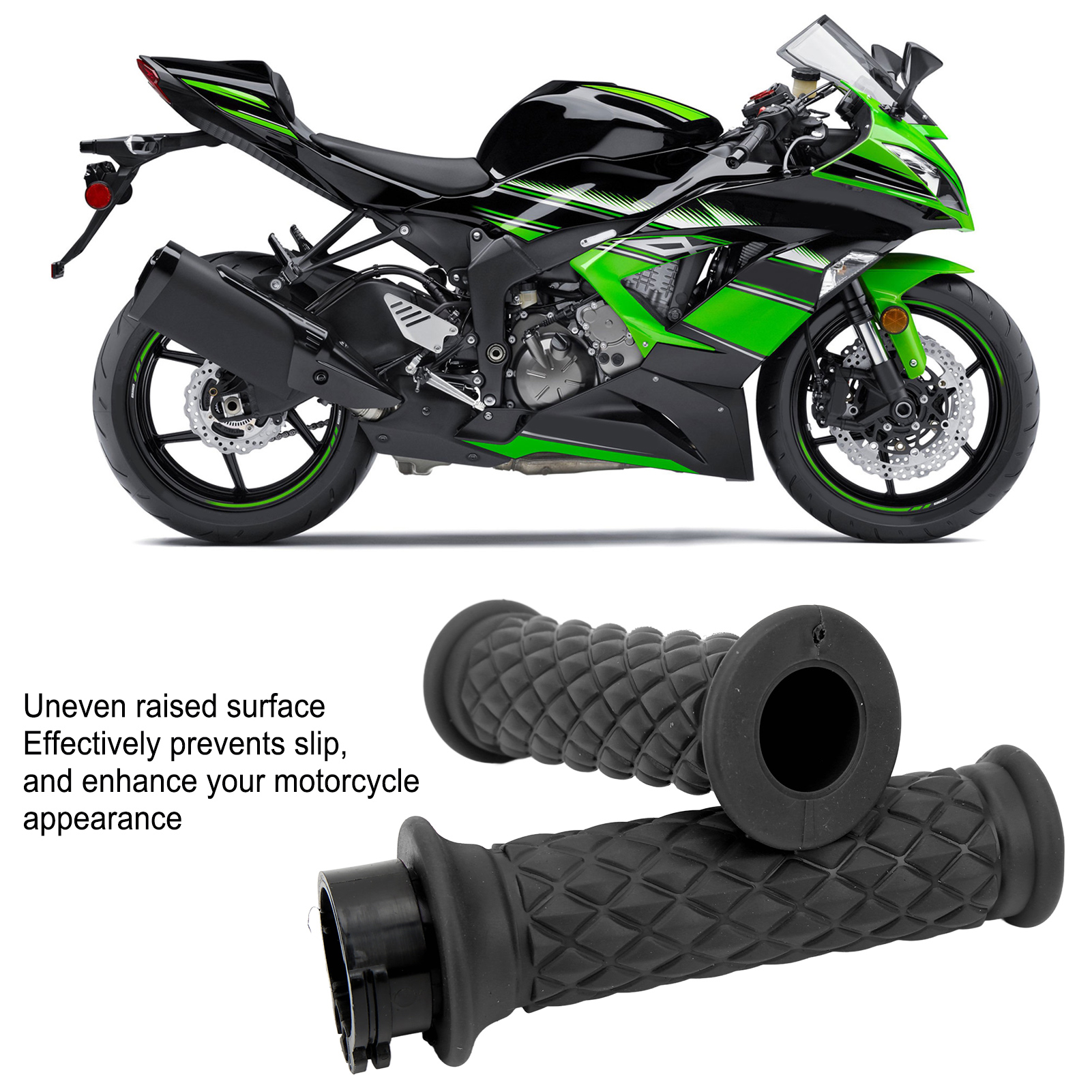 1、Fitment: Universal fit for motorcycle with 25mm (1in) standard hollow handlebars. Replacement for CBR600RR CBR1000RR; Replacement for Ninja 250R ZX6R, etc. 2、Better Performance: Motorcycle handlebar grip can be used to replace the original shabby handlebar, brings better throttle performance for your motorcycle. 3、Anti Slip: Motorcycle handle is designed with uneven raised surface design, effectively prevents slip, and enhance your motorcycle appearance. 4、Soft Silicone: Motorcycle hand grip is made of soft silicone and plastic material, heat resistant, flexible and durable, comfortable to grip. 5、Quick Installation: Throttle handles are easy to install, just install it on original position, no modification needed, fast and convenient.
