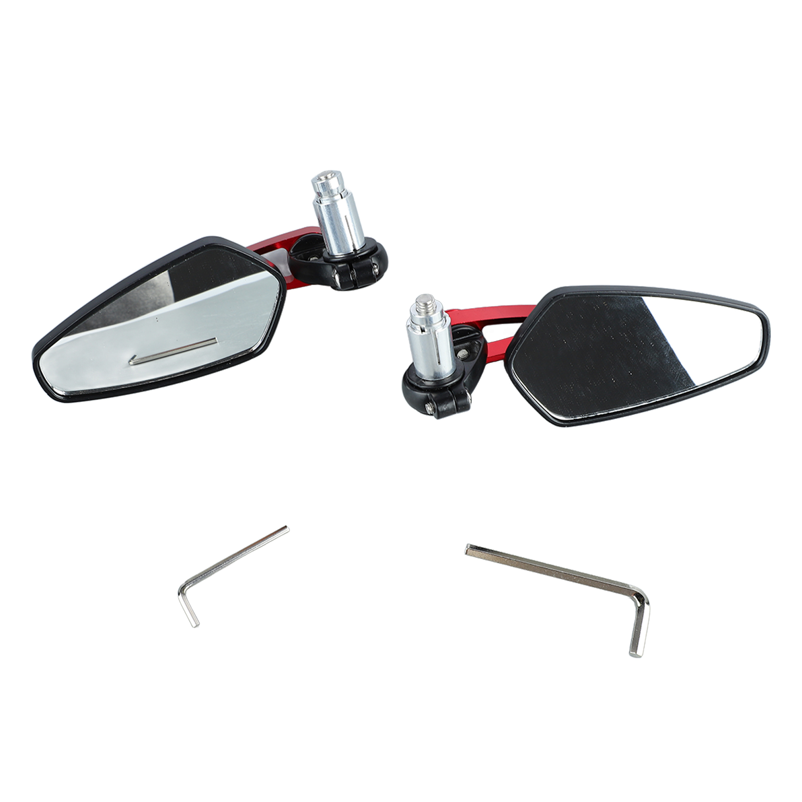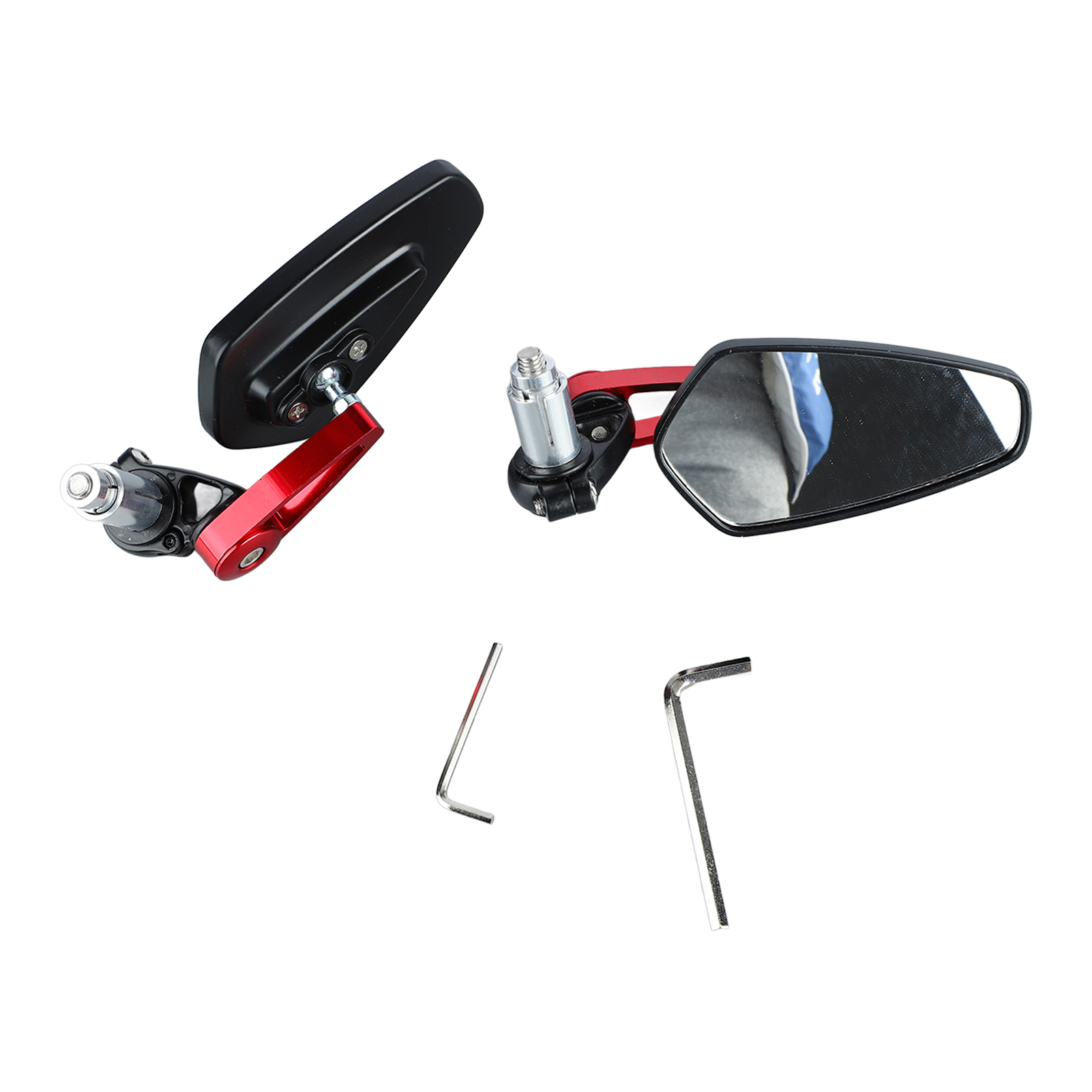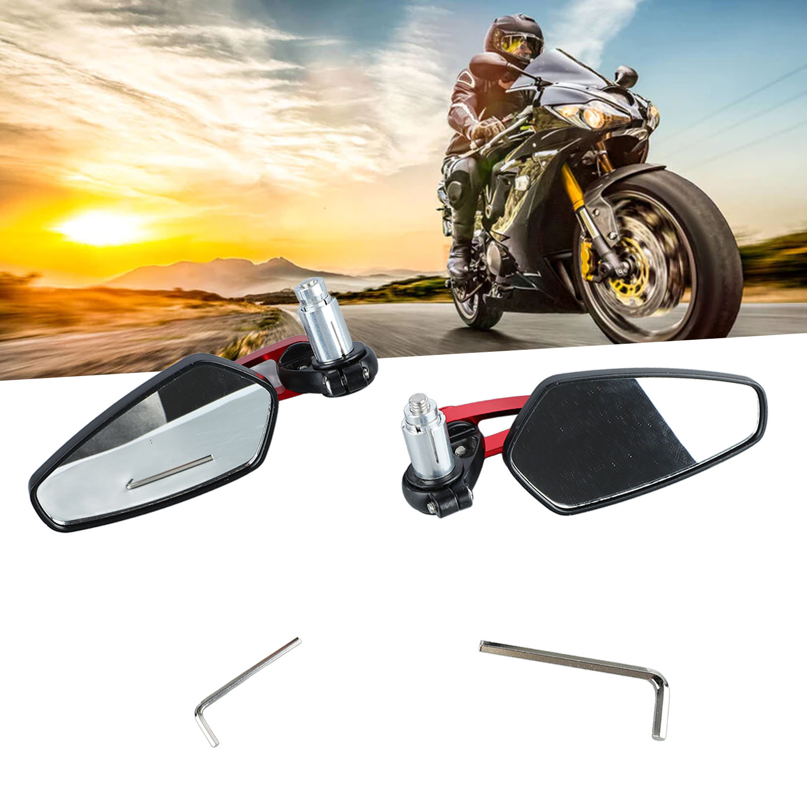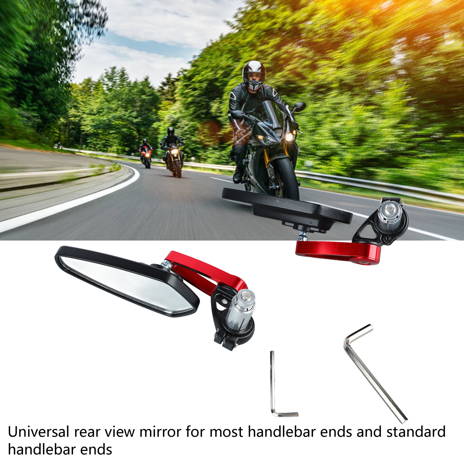 1、Universal Mirror: Universal rear view mirror for most handlebar ends and standard handlebar ends, giving you professional use results. 2、360° Rotatable: Rotatable design puts the mirror at the ideal angle for driving position and enhances driving safety. 3、Clear Vision: Premium and smooth glass provides a clear view both day and night, making you have a good visual experience. 4、Cool Style: Unique and personalized design is perfectly integrated with most motorcycles, effectively enhancing motorcycle style. 5、Shockproof: Upgraded motorcycle mirrors can adapt to the bumpy road, anti vibration, stable and not easy to fall off.
