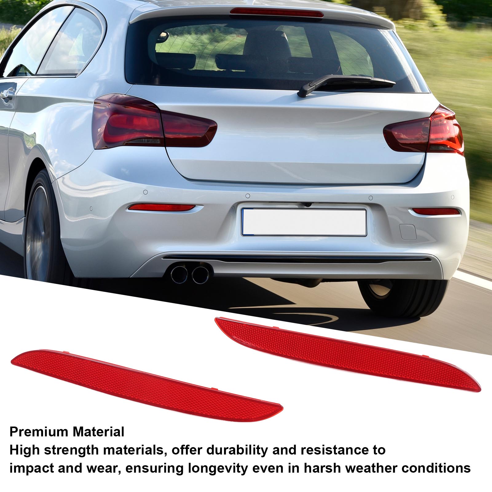 1、Applicable Model: The rear bumper corner reflector is for 1 Series F20 F21 LCI. Please confirm whether it is consistent with the product you want before buying to avoid unnecessary return. 2、OE Number: The part numbers for reference are 63147363787, 63147363788. Please confirm whether it is consistent with the OE you need to avoid wrong buying and other problems. 3、Premium Material: The rear bumper light reflector is made of high strength materials for longer lifespan, resistant to shock, wear and tear. Will stand up to even the toughest weather conditions. 4、Enhanced Security: The rear bumper lamp reflector serves as functional security features of your vehicle, improving visibility and alerting other drivers of your vehicle's presence while on the road. 5、Easy Installation: The tail bumper lamp reflector is easy to install without any need of professional skills or special tools, making it an efficient way to enhance your vehicle's security and style.