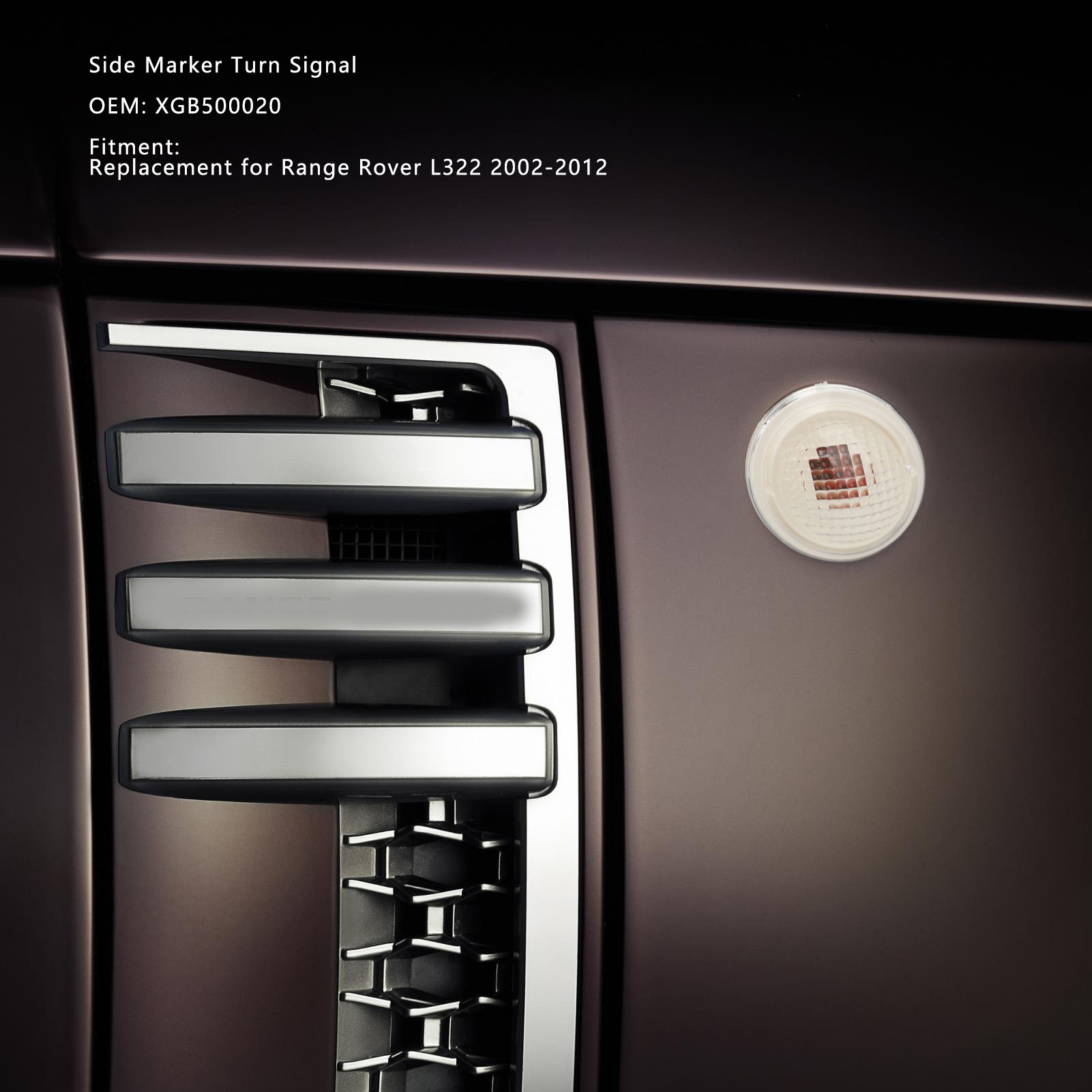 1、Applicable Model: Side marker light is replacement for Range Rover L322 2002‑2012, please confirm whether your model is applicable before buying. 2、OE Number: The part number of side marker lamp for reference is XGB500020, please confirm whether it is consistent with the OE you need. 3、Improve Safety: Replace worn and damaged side marker lights, effectively display the driver's turning intention to other vehicles and pedestrians, reduce driving blind areas, and improve driving safety. 4、Fine Workmanship: Professional manufacturing, exquisite workmanship, unique design, to ensure stable performance and high reliability. 5、Easy Installation: Installing these side marker lights on your vehicle is a breeze, thanks to their user friendly design and included accessories.