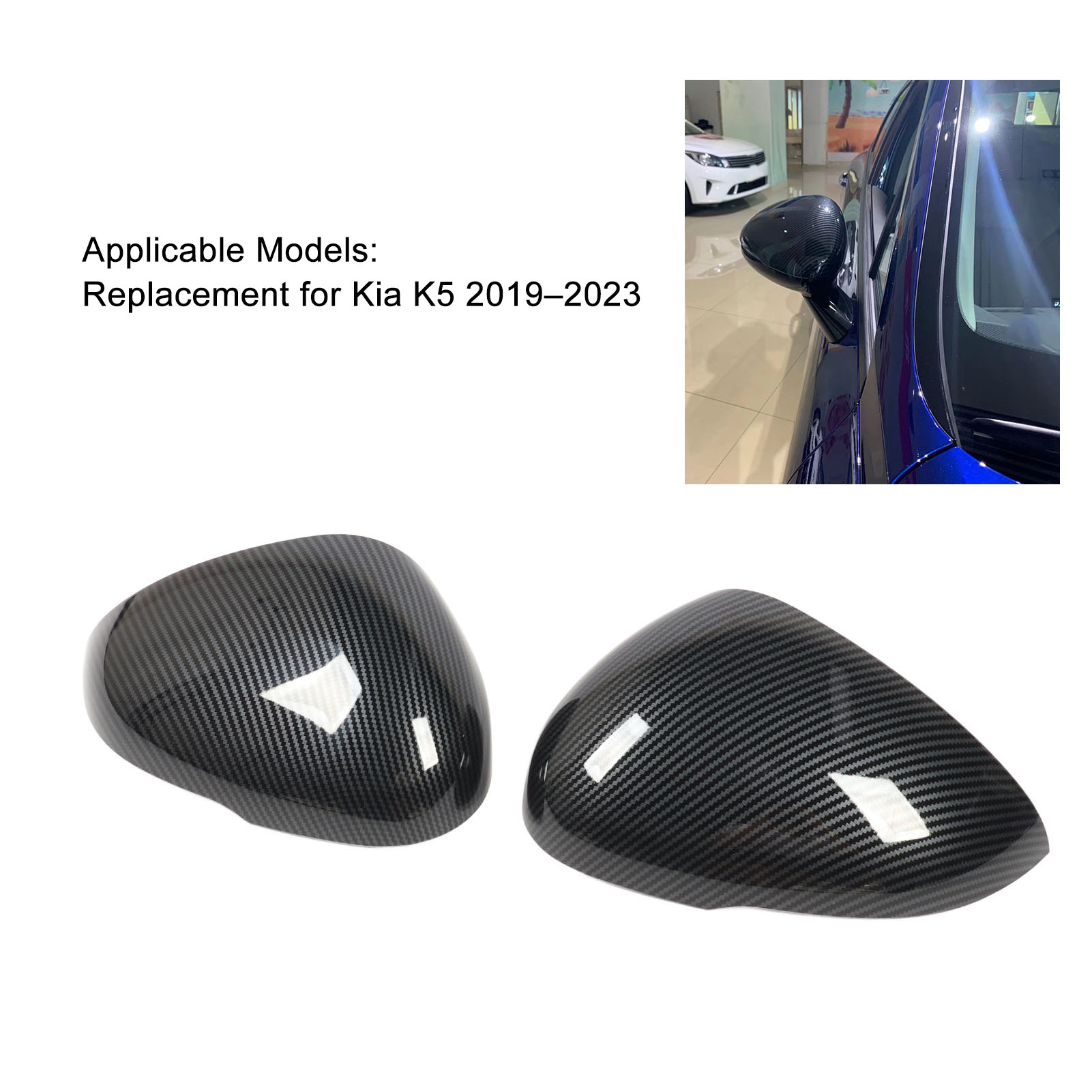 1 Pair Side Rearview Mirror Cap Left Right Carbon Fiber Style Door Mirror Cover Replacement for Kia K5 2019 to 2023