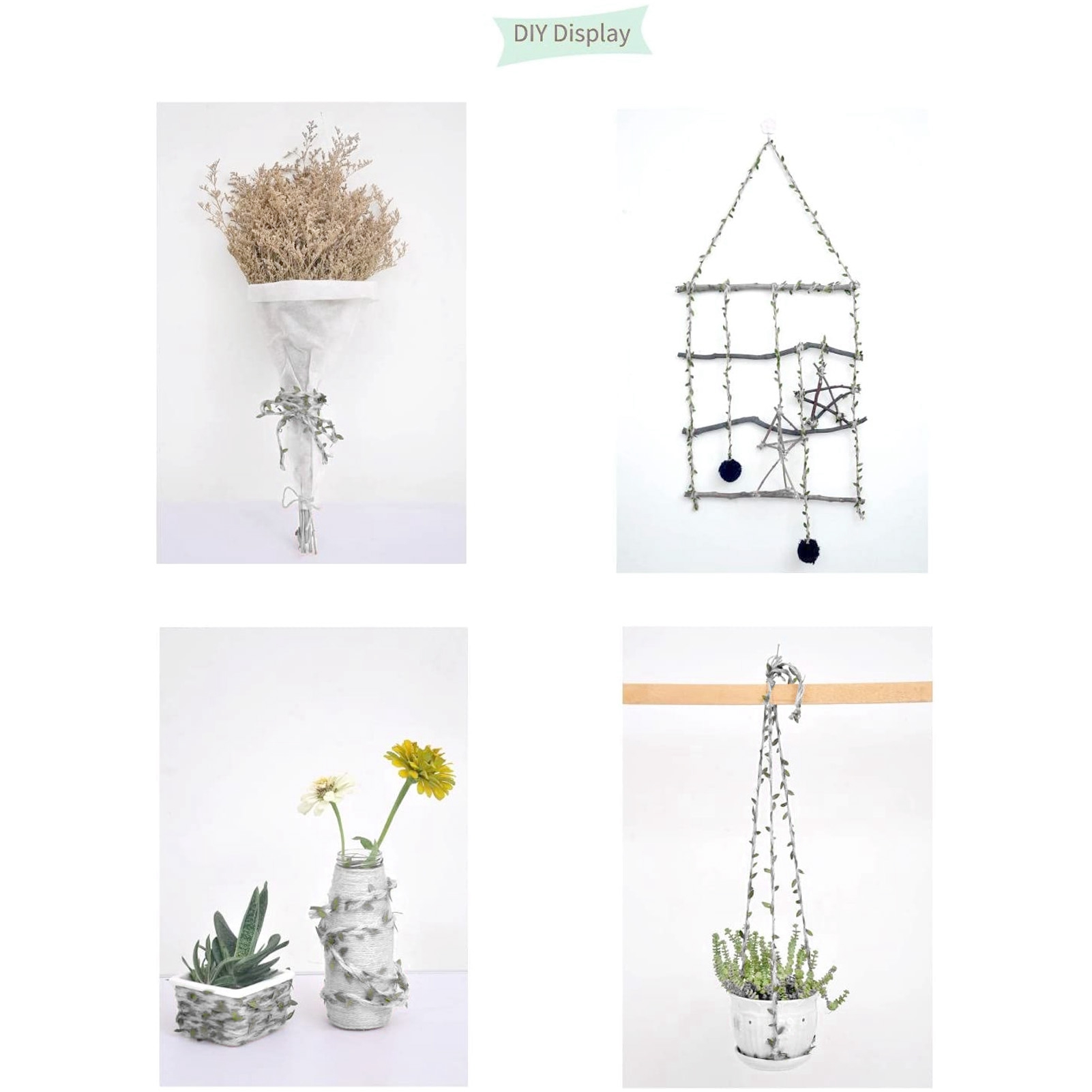 1、Multipurpose: Suitable for hand made works, decoration backgrounds, DIY and more. 2、Material: High quality jute, breathable and refreshing, washable and sun resistant, anti corrosion and antibacterial. 3、Firm: Regular cross interweave, clear texture, full silk toughness, not easy to break. 4、Exquisite: Multistrand hemp rope rattan leaf weave, strong and durable, beautiful and fashionable. 5、Natural: The vivid texture makes it look like a real plant. Feel in nature when this faux leaf rattan wreath decorates your house or garden.