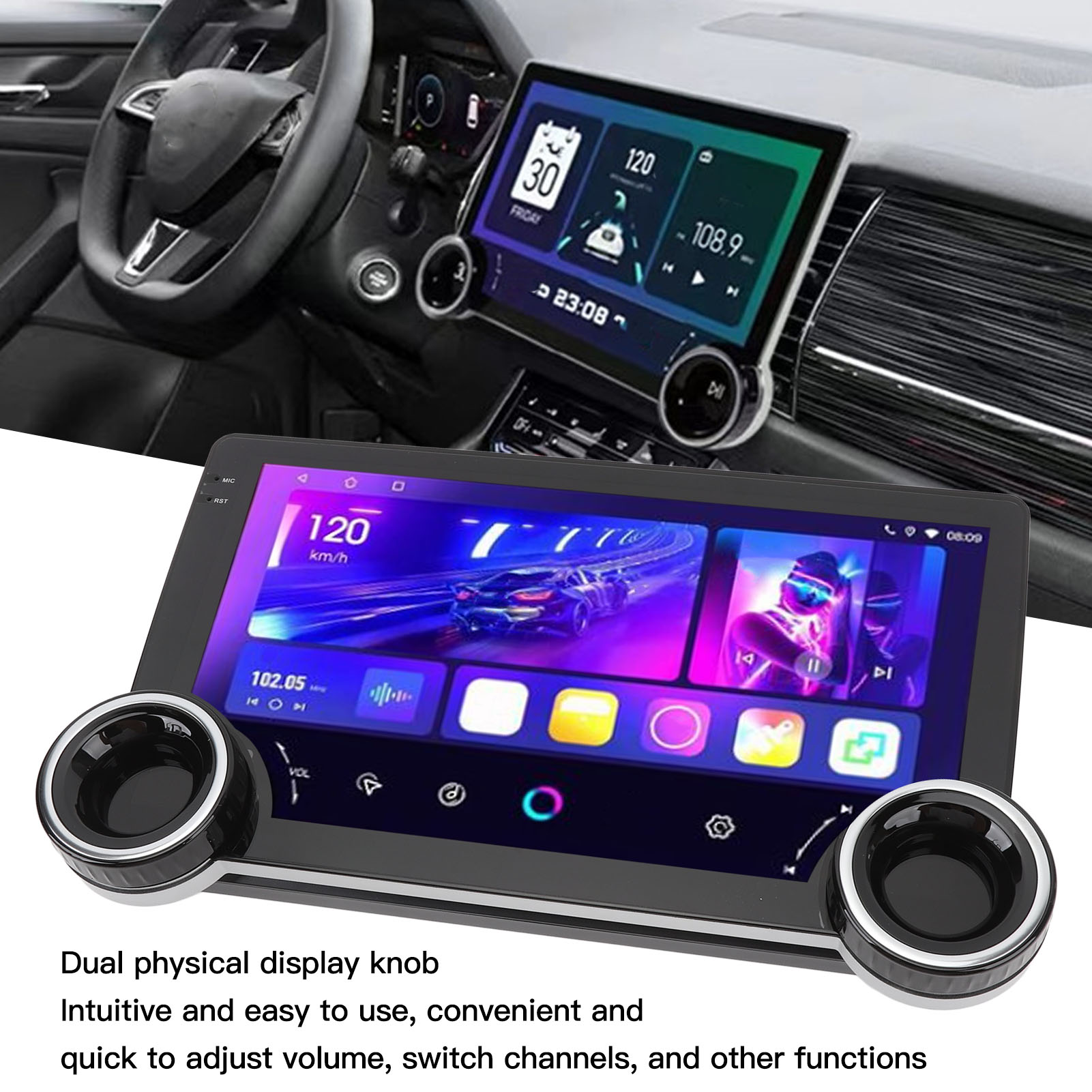 1、User Friendly Dual Physical Knob: 2 din car stereo features a dual physical knob display, providing a more intuitive and easy to use operation experience. It conveniently and swiftly adjusts the volume, switches channels, and completes several other functions. 2、Support for CarPlay and for Android Auto: This car media player fully supports seamless connections with both for IOS and for Android smartphones. It offers easy direct control of phone functions, such as navigation, phone calling, and music playing, from your car's screen. 3、Large 10.1 inch IPS HD Touchscreen: With a 10.1 inch IPS high definition touchscreen, our car stereo delivers outstanding visual performance. It offers a high degree of clarity and a responsive touch, greatly enhancing the ease of use. 4、Multifunctional: Car radio is integrated with GPS navigation, FM radio, Bluetooth, and WIFI, allowing voice navigation, radio listening, and supporting both Bluetooth and WIFI connections. These features, along with for Android Auto or for CarPlay, enable a variety of practical functions. 5、Powerful 8 Core Processor: Equipped with a powerful eight core processor, car headunit is designed to run various applications smoothly. It offers ample storage space, meeting diverse usage requirements and guaranteeing a superior user experience.