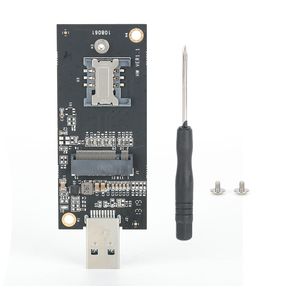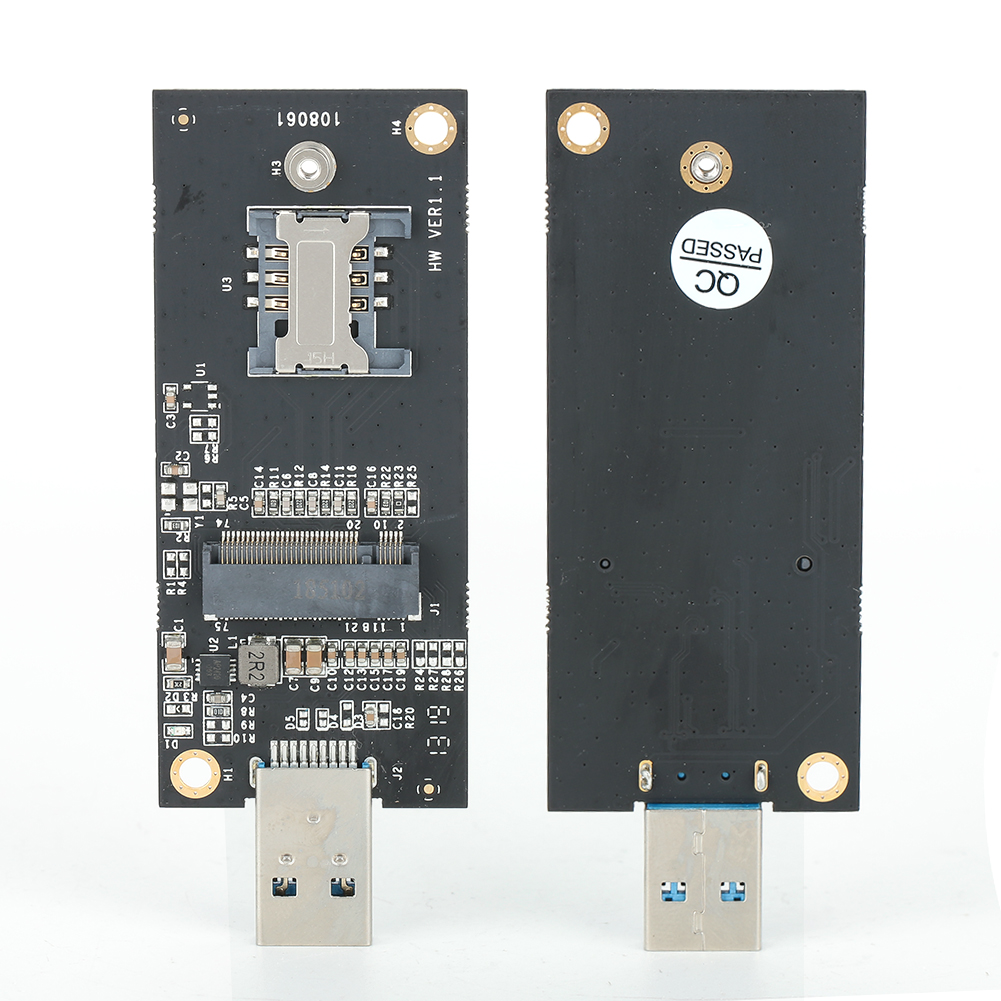 1、M.2 card supporting USB interface (Socket 2 SSIC-base WWAN), such as 2G GSM, GPRS, 3G, CDMA, (M.2) Key B USB adapter card is designed for desktop/laptop. Convert the wireless M.2 card module to a USB port. 2、M.2 card (Socket 2 SSIC-base WWAN) supporting USB interface, such as 2G GSM, GPRS, 3G, CDMA, WLAN, WWLAN, HSPA MODEM, GPS, 4G WiMAX, LTE, mini card inserted into desktop or Laptops, such as for Huawei MU736 / ME936 / ME906V, Sierra Wireless Airprime EM7305 and other modules. 3、When using, firstly use the M.2 card module (Socket 2 SSIC-base WWAN) such as GSM, HSPA (3.5G), GPS, LTE card to the riser adapter, and then insert the card into the USB port of the computer. 4、Easy to install, no need to install the driver, but make sure that the M.2 card module has installed the software driver. 5、Supports 30 x 42 type (M.2) Key B cards. 6、Support 6-bit / 8-bit SIM card connector. 7、No external power supply is required; Support hot swap. 8、Support any operating system, such as for Windows, for WinCE, for Linux, for iMAC, etc.
